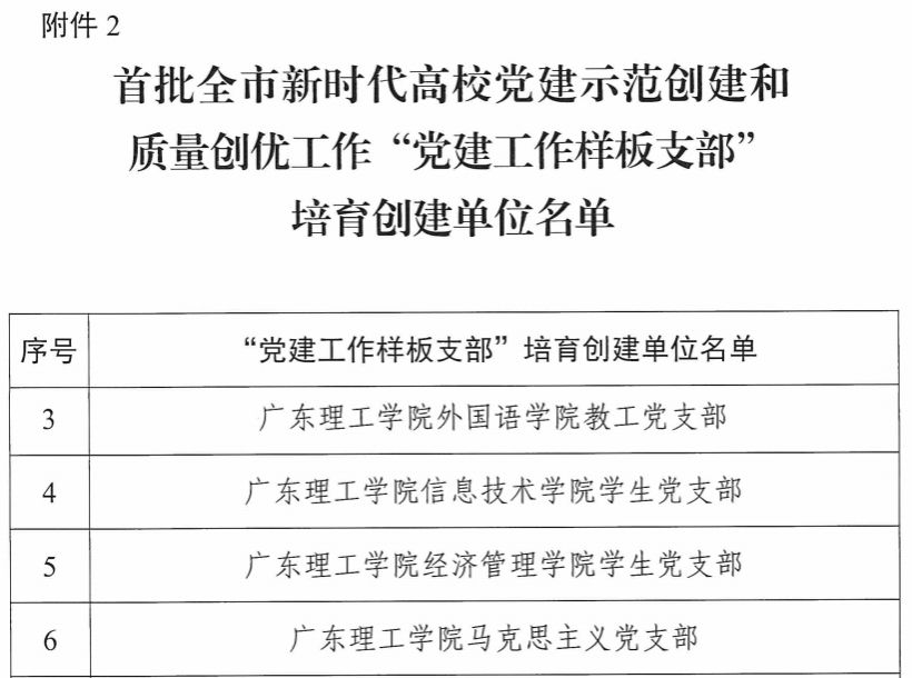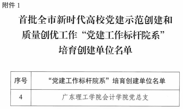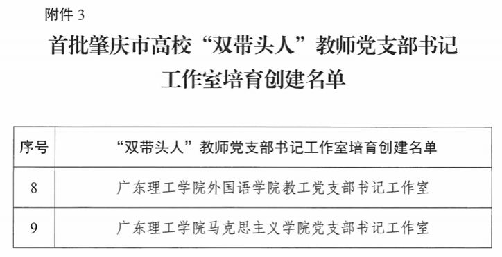 其中,会计学院党总支入选为首批“全市党建工作标杆院系”培育创建单位,外国语学院教工党支部、信息技术学院学生党支部、经济管理学院学生党支部、马克思主义学院党支部4个基层党支部入选为首批“肇庆市党建工作样板支部”培育创建单位,外国语学院教工党支部书记工作室、马克思主义学院党支部书记工作室入选首批肇庆市高校“双带头人”教师党支部书记工作室培育创建名单。