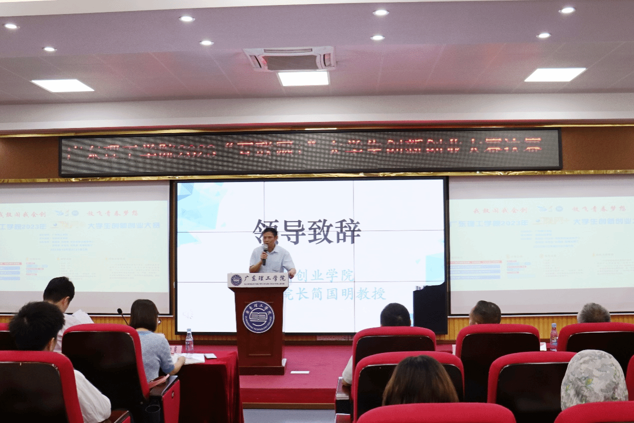 图2 创新创业学院常务副院长简国明教授代表校领导讲话