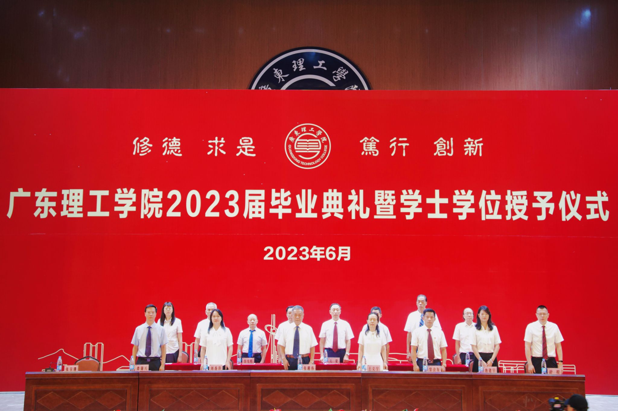 王义宁宣读《关于表彰2023届优秀本、专科毕业生的决定》。主席台就座领导为本科、专科优秀毕业生代表颁发 “荣誉证书”“毕业证书”。