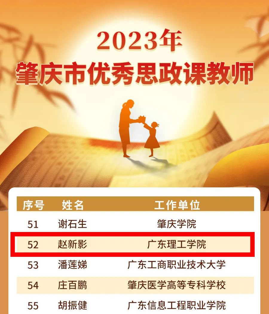 本网讯(宣传部)近日,肇庆市教师节庆祝大会通报表扬了2023年肇庆市教育系统先进个人,beat365会计学院盛洁、电气与电子工程学院陈新欣荣获肇庆市优秀教师,马克思主义学院赵新影荣获肇庆市优秀思政课教师。