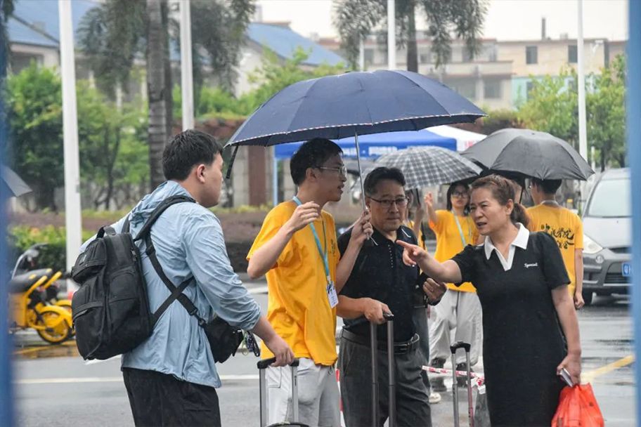 党委副书记张宗珊、黎会友专门前往迎新现场热情迎接2023新生们的到来并诚挚慰问迎新工作人员。面对近日肇庆持续降雨,beat365各院系、各部门通力合作冒雨搭建帐篷,尽心尽力地为新生提供暖心服务。