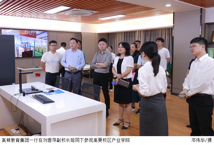 会后高顿教育集团一行在刘香萍副校长的陪同下,参观了经济管理学院实验室及高要校区产业学院。