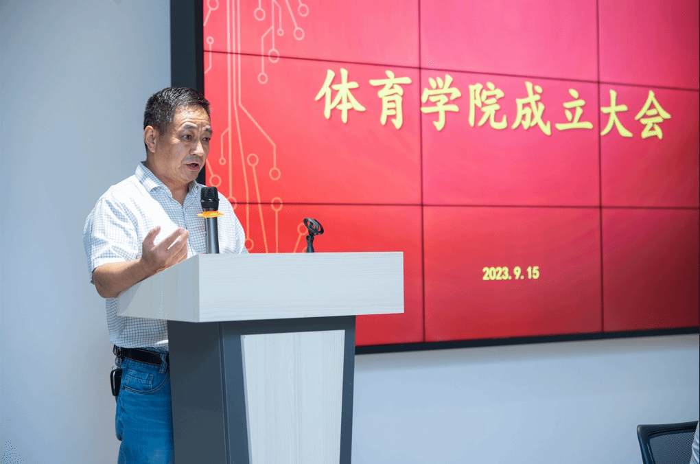 体育学院党总支书记夏磊、院长贾树波、副院长王群英分别致辞。对体育学院改系设院的发展历程进行回顾,向学校各级部门和领导的指导与支持,体育学院全体教师共同奋斗与努力表示感谢。并对体育学院站在新起点的教学、科研、管理、服务等工作进行规划部署。