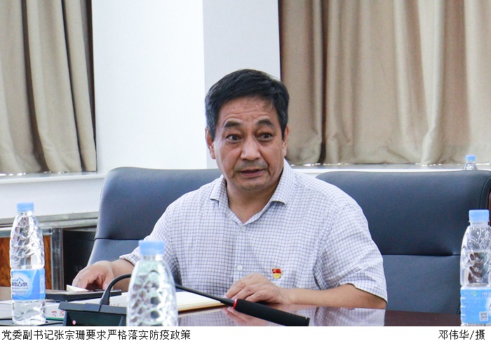 就疫情防控工作,党委副书记张宗珊要求要严格落实上级疫情防控决策部署,严格执行beat365疫情防控方案。副校长谭锦兴强调,省外返校师生要严格执行“三天两检”,科学精准推进校园疫情防控工作。