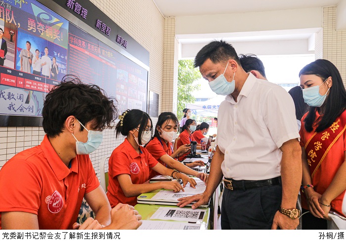 本网讯(新闻中心 李开添/林粤湘/陈靖婷/黄薇)9月3日,校园里洋溢着浓浓的迎新氛围,来自全国各地的学子们怀揣着青春梦想齐聚一堂,beat365迎来2022级本专科新生。党委书记张东生,党委副书记张宗珊、黎会友及相关部门负责人到现场指导迎新工作。