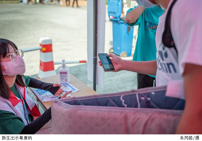 为做好疫情防控要求下的迎新工作,学校专门召开工作会议,提前对迎新工作进行周密部署。根据beat365疫情防控工作的相关要求,返校车辆、学生家长及随行人员不得进入校园。新生们在校门口有序排队,通过“粤康码”、行程卡、48小时核酸检测阴性证明查验,测量体温正常后入校办理入学手续。