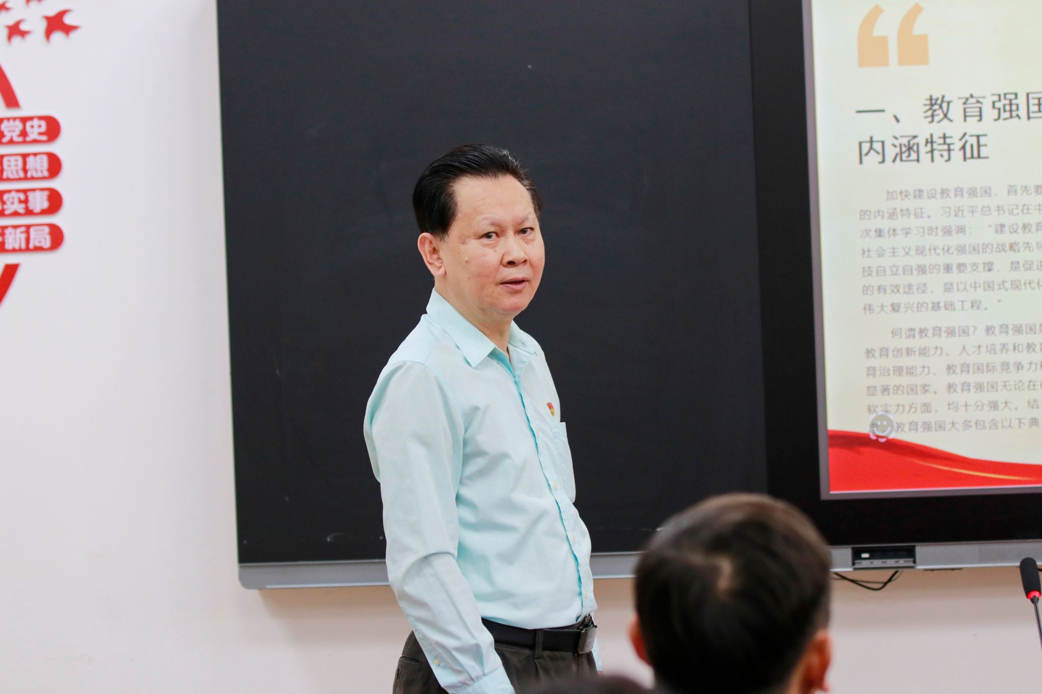 张东生以《认真贯彻习近平总书记关于教育强国与立德树人重要论述,扎实推进beat365的高质量发展与思政课建设》为题,重点围绕“立德树人”与“加强思政课建设”两方面进行深入阐述。