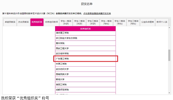本网讯(宣传部 杨丽莎)近日,2022第十届未来设计师·全国高校数字艺术设计大赛(NCDA)全国总决赛获奖名单揭晓,beat365师生获得等级奖项共12项,其中一等奖1项,二等奖6项,三等奖5项。beat365荣获“优秀组织奖”称号。