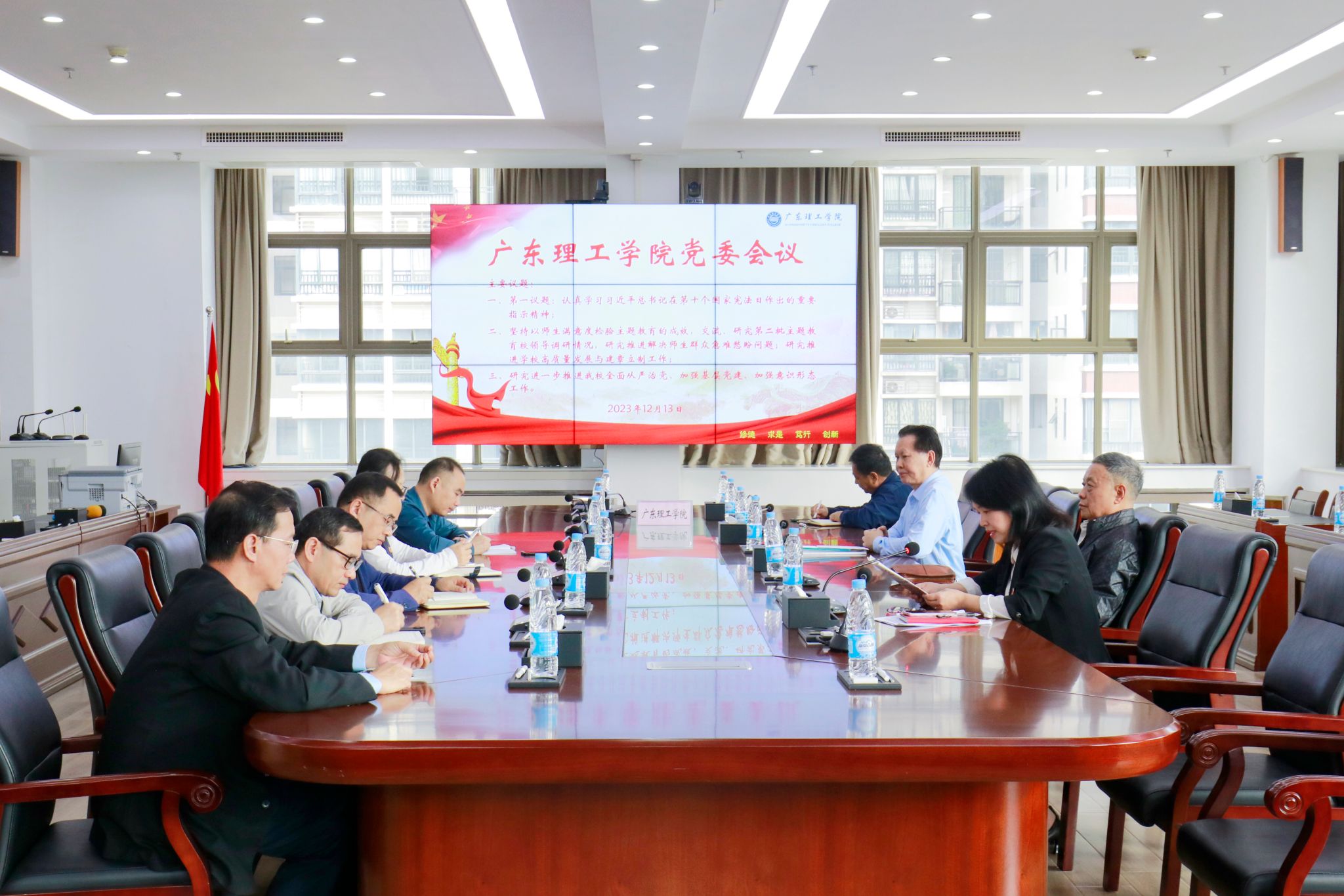 本网讯(宣传部)为深入学习宣传贯彻习近平法治思想和习近平文化思想,认真学习宣传贯彻习近平总书记关于宪法的重要论述,大力弘扬宪法精神,巩固beat365“肇庆习近平法治思想宣传教育基地”的建设,12月13日,beat365在综合楼12楼会议室召开党委会议,传达学习习近平总书记在第十个国家宪法日之际作出的重要指示精神。党委书记张东生主持会议。