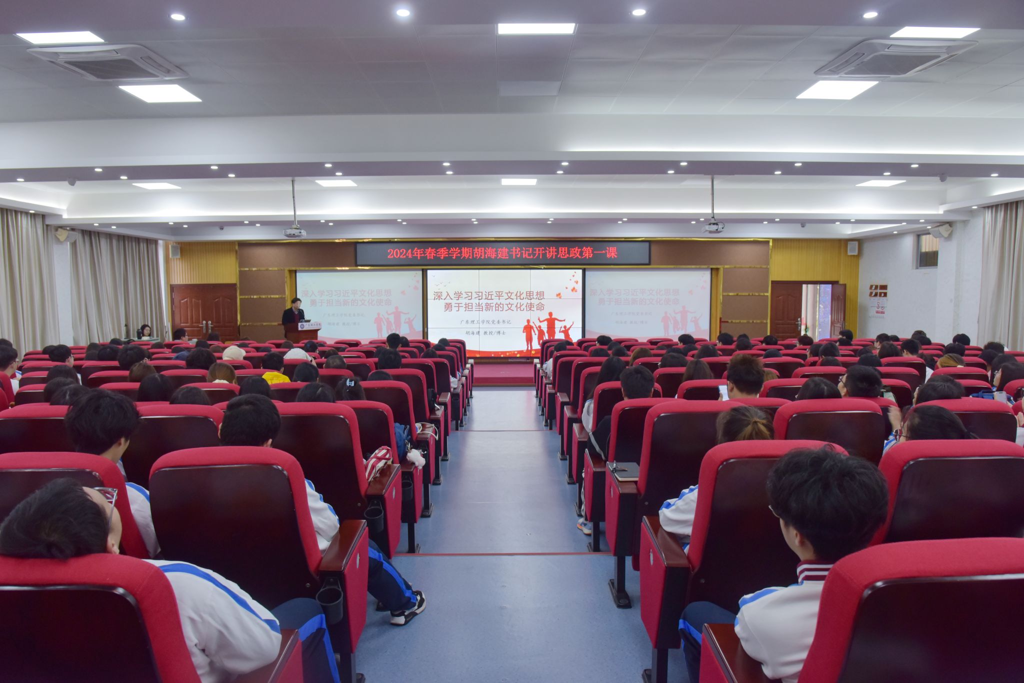 本网讯(新闻中心)为贯彻落实教育部等十部门《全面推进“大思政课”建设的工作方案》精神,3月12日上午,校党委书记胡海建以“深入学习习近平文化思想,勇于担当新的文化使命”为主题,在beat365高要校区42栋报告厅开讲“思政第一课”。