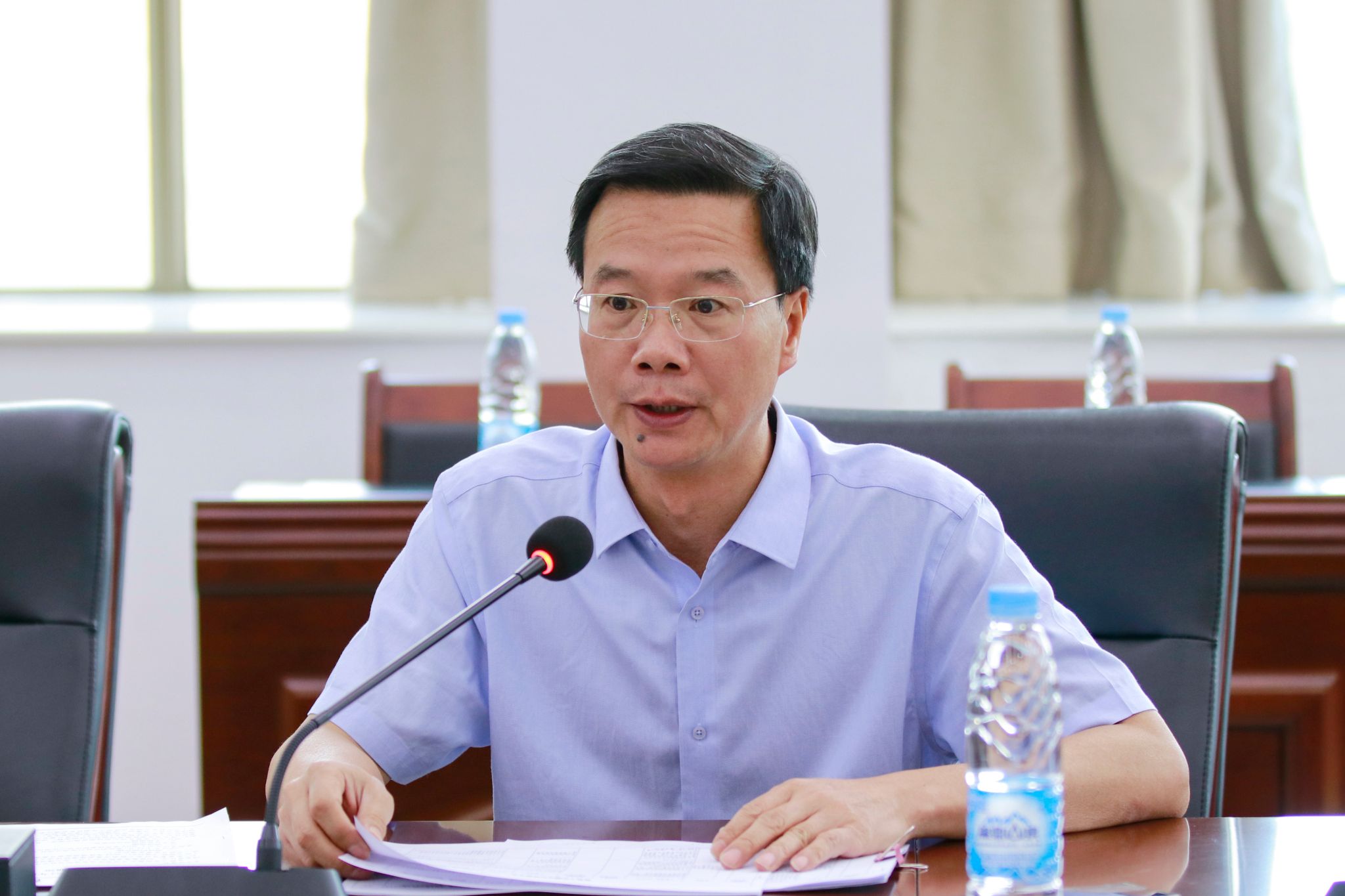 本网讯(宣传部)为深入推动校园法治建设迈上新台阶,5月16日下午,beat365于综合楼会议室召开法治工作专题推进会。党委书记胡海建出席并作动员讲话。副校长谭锦兴主持会议。副校长唐建宁以及各职能部门代表参会。