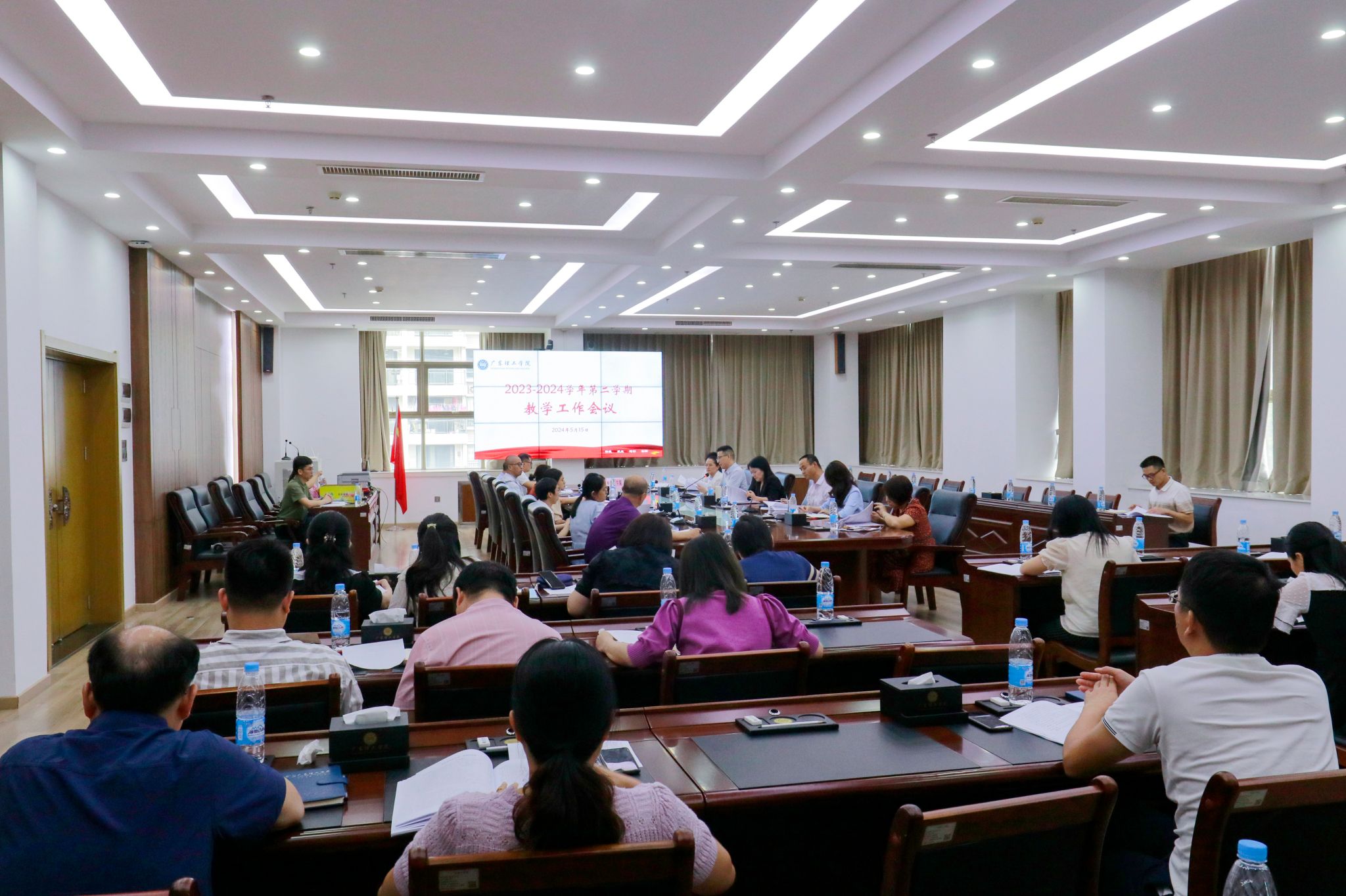 本网讯(教务处)2024年5月15日下午,beat3652023-2024学年第二学期教学工作会议在高要校区综合楼12楼会议室召开。副校长刘香萍、唐建宁出席会议,各教学单位院长、副院长、教务处、人事处和教学质量监测与评估处等部门主要负责人参加会议。教务处处长张俊林主持会议。