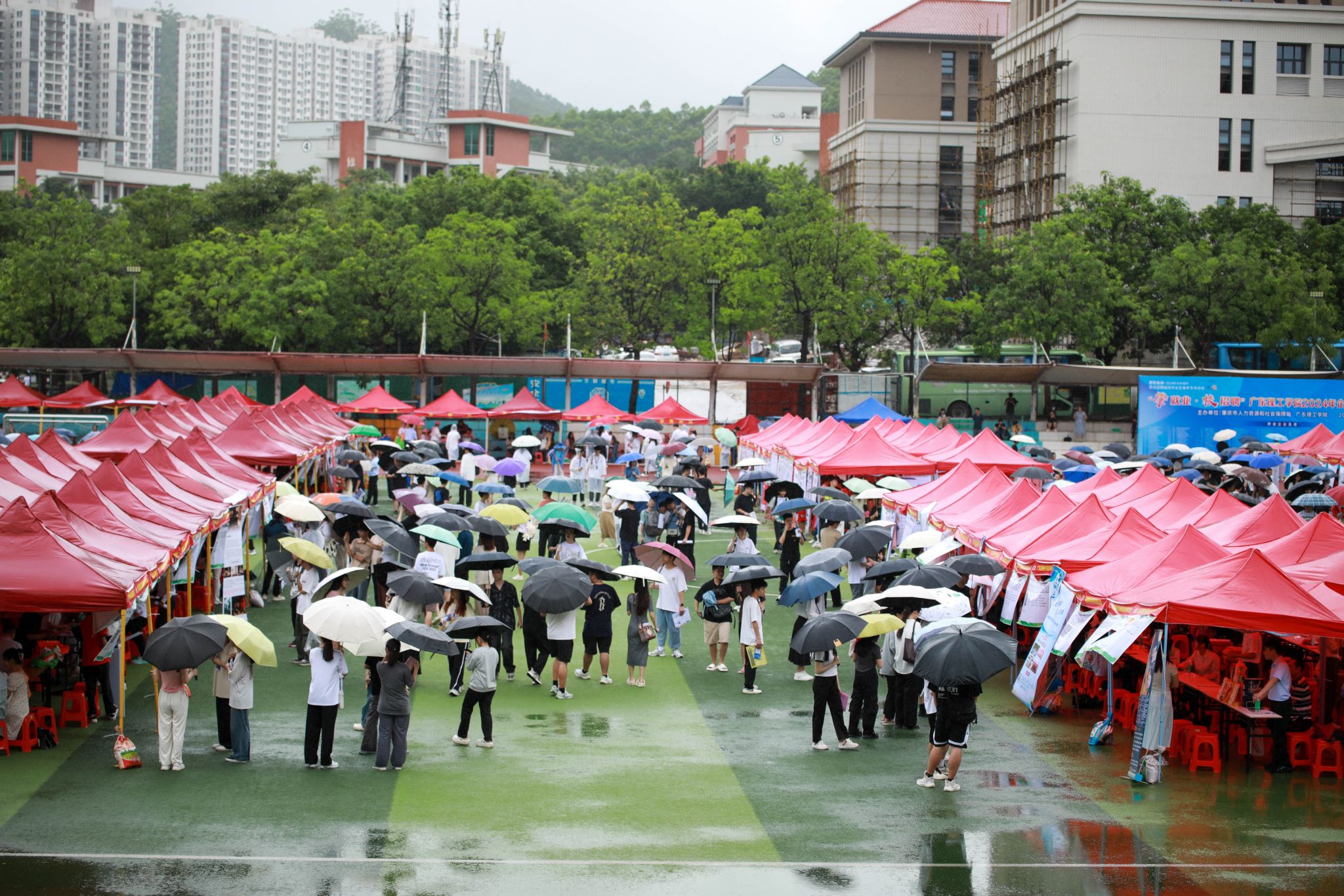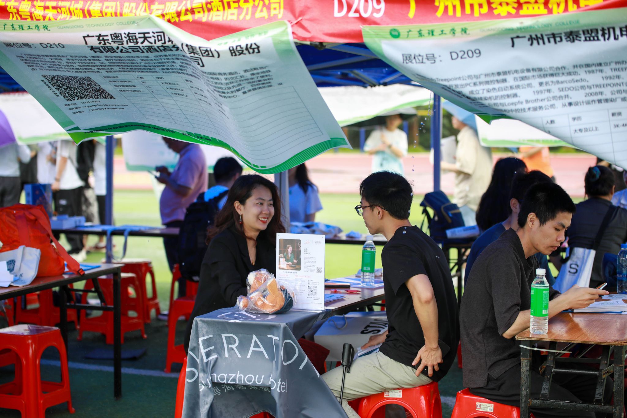 受访学生分享道,在双选会上主要关注与自身专业相关的企业和岗位。虽然天气不太如人意,但是双选会现场还是热闹非凡,实习岗位数量众多,有信心找到心仪的岗位。