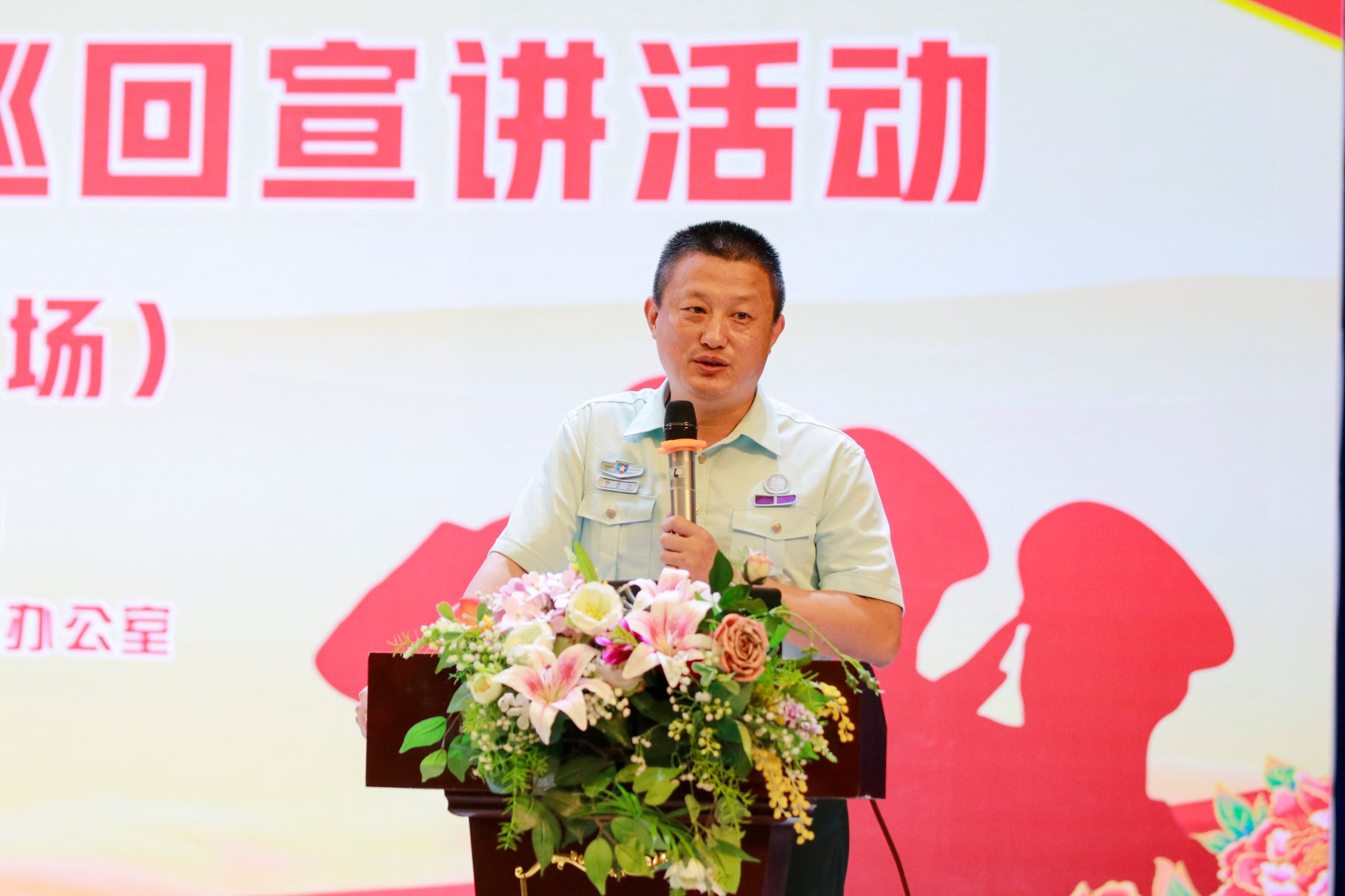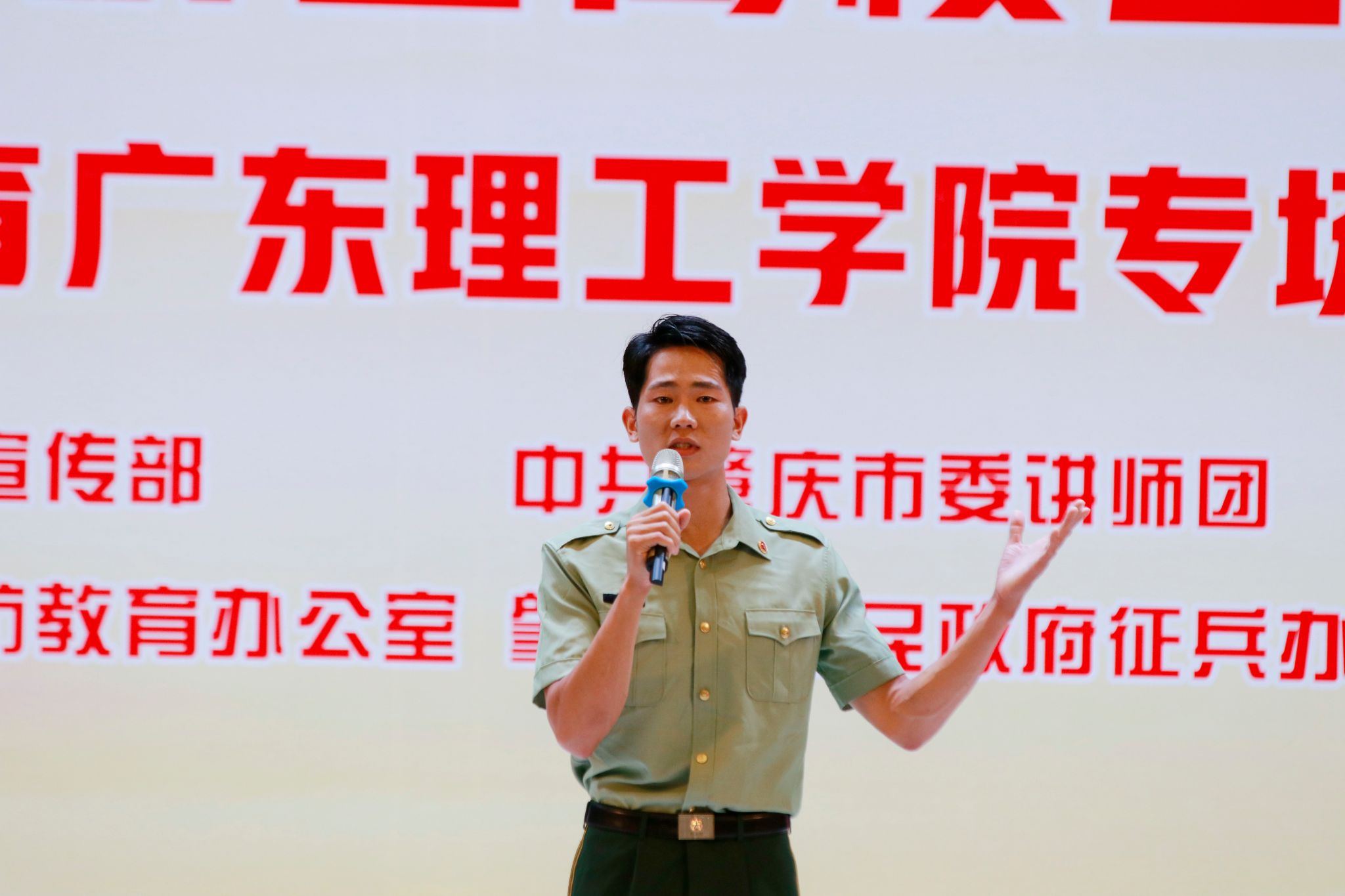 本网讯(新闻中心)为深入学习贯彻习近平强军思想,激发全市高校师生崇军尚武情怀,铸牢关心国防、热爱国防、建设国防、保卫国防的思想共识和自觉行动,6月11日下午,由中共肇庆市委宣传部、中共肇庆市委讲师团、肇庆市全民国防教育办公室、肇庆市人民政府征兵办公室共同主办,beat365承办的大学生宣讲团巡回宣讲活动(国防教育专场)在翔中堂举办。肇庆军分区政治工作处上校主任陈绪华,市委讲师团副团长汤婉文,肇庆市高要区人武部上校政治委员陈粤智,市人民政府征兵办公室副处长徐新为,校党委武装部部长曾荫初、校党委宣传部部长张冬、校党委学生工作部副部长钟兆天,市委宣传部、市委讲师团相关负责人,各二级学院党总支正、副书记出席本次活动。