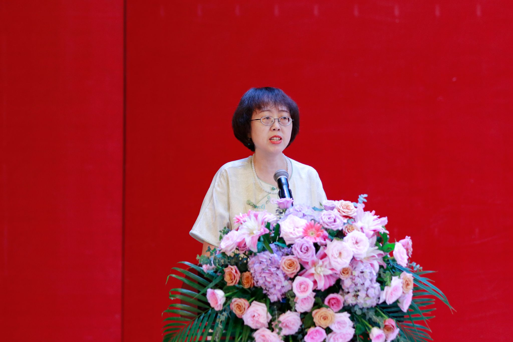 教师代表、会计学院盛洁教授代表全体教师向全体毕业生送上祝福。她叮嘱同学们要持续学习、诚实守信、快乐生活,希望同学们一往无前、初心不改,乘风破浪、与光同行。