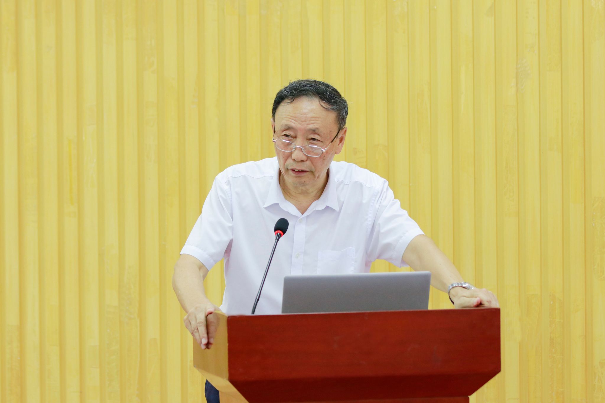 第二讲由学校党委书记胡海建主讲,他围绕如何依法治校和依法治教进行授课,深入阐述了法治的重要性和必要性,号召全体干部要强化纪律规矩、改造思想作风、凝聚共识与力量,以全新的精神面貌引领学校高质量发展。党委副书记、纪委书记张宗珊主持。