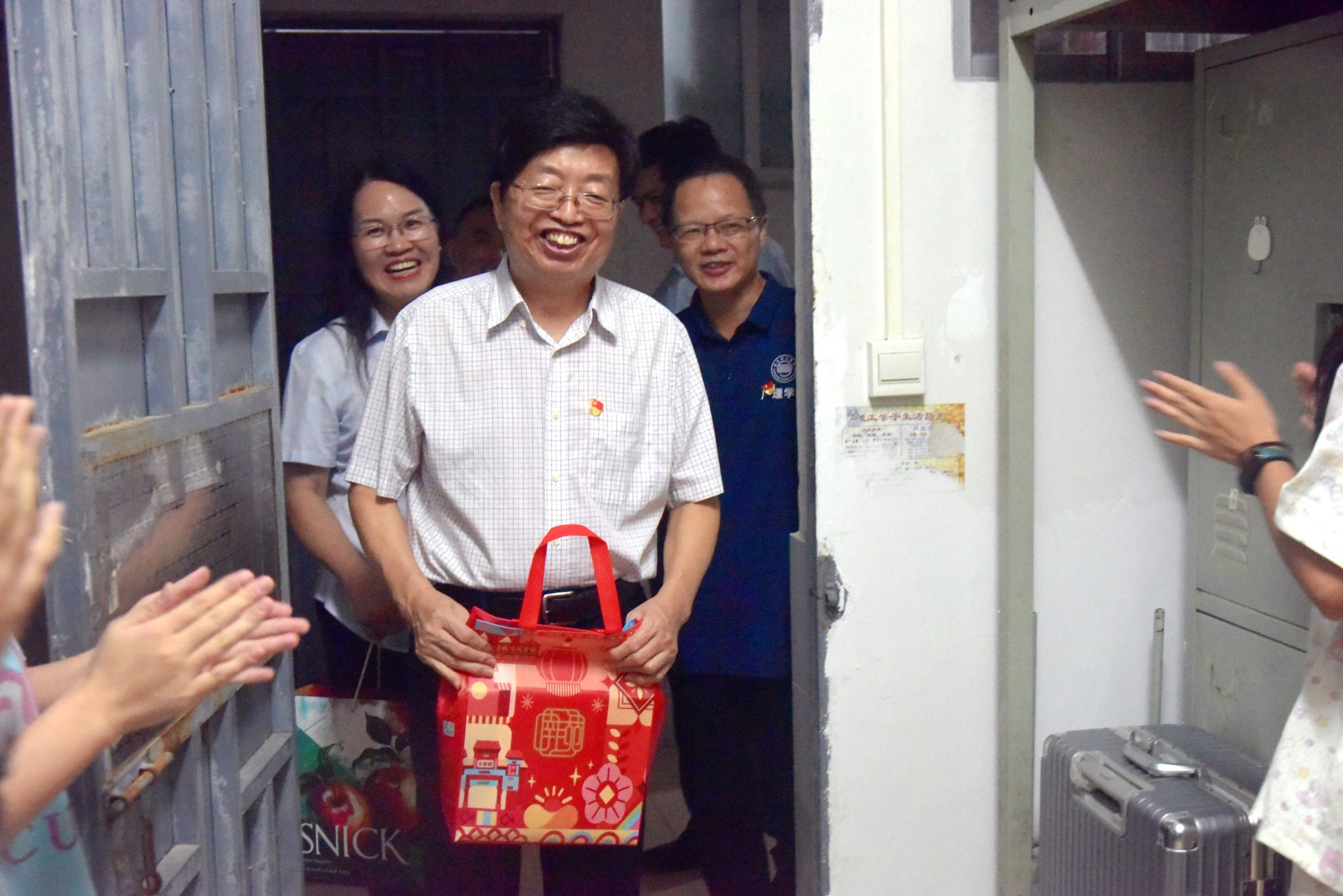 本网讯(宣传部)9月17日晚,中秋之夜,beat365党委书记胡海建、副校长刘香萍等一行,怀揣着满满的节日祝福,携带精心准备的月饼和水果,深入校园各个角落,包括老教授办公室、新教师办公室、学生宿舍、宿管区以及保安室,开展了一场全面的走访慰问活动。