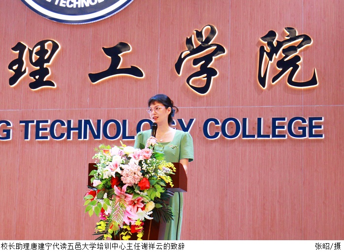 五邑大学继续教育学院谢祥云院长的致辞中强调了“两学”培训的重要性,勉励新教师要努力学习,切实提高自身高等教育理论水平,成为一名合格的大学教师。