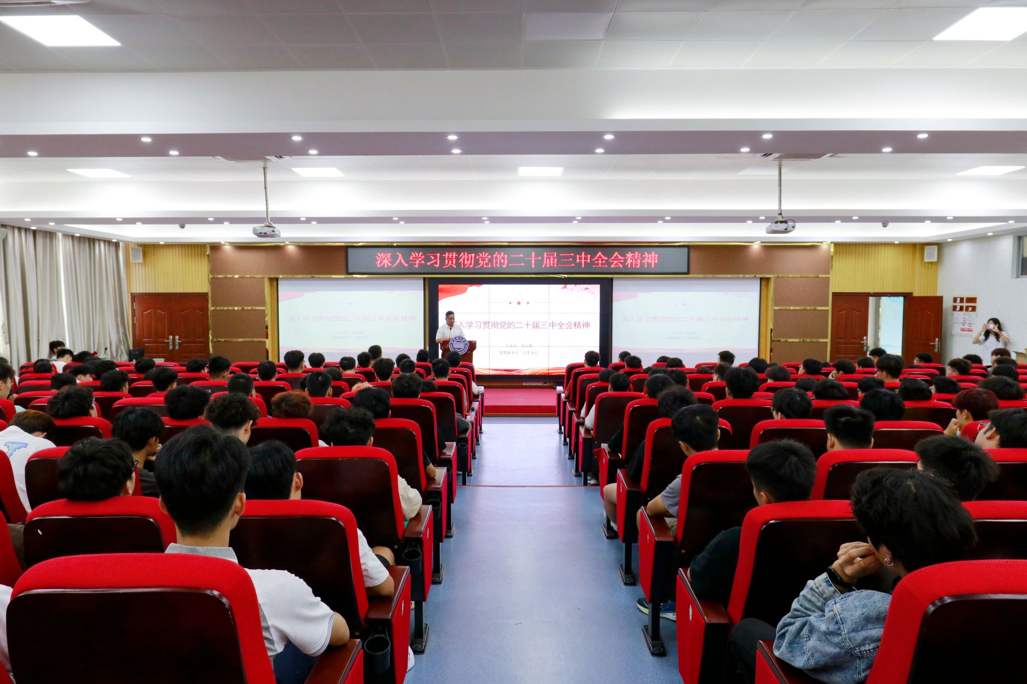 本网讯(宣传部)近日,学校党委副书记张宗珊在振华楼学术报告厅开讲“思政第一课”,深刻阐述党的二十届三中全会精神。来自体育学院的学生代表200余人听课。