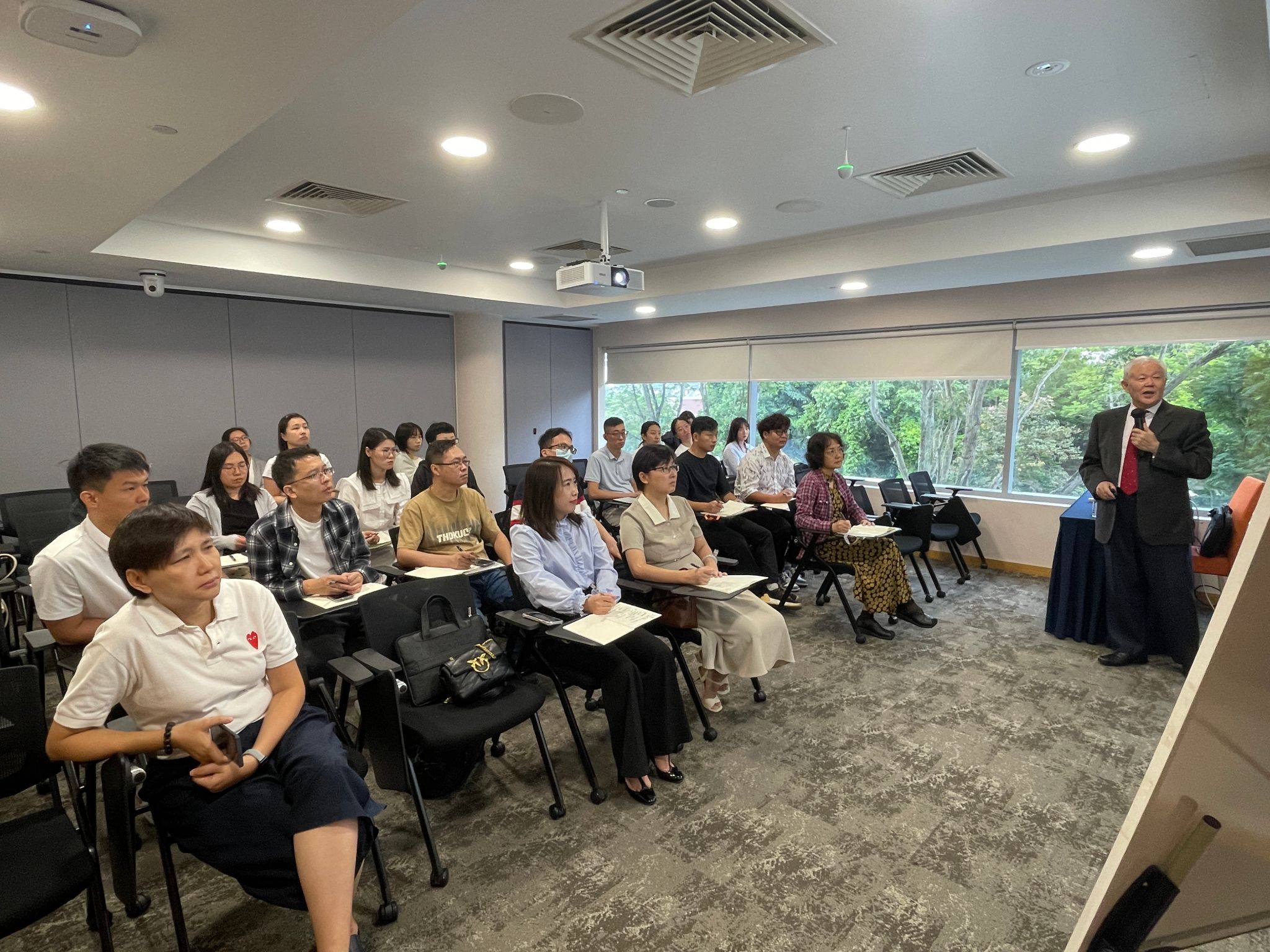 在新加坡国立大学(NUS),老师们聆听了由该校杨建伟教授主讲的“新加坡的政治、经济、历史、社会:新加坡的国情概况与经济发展”专题报告。杨建伟教授对新加坡国情、经济发展政策和历程等方面作了介绍,通过分析新加坡的历史、政治、经济与社会发展,系统了解了新加坡这个城市即国家的特点、优势和劣势,提到新加坡的多语言环境,以及不同语言在新加坡的发展,也特别强调教育和人才的重要性。杨教授深入浅出的讲解极大地拓宽了老师们的国际视野,其深刻的见解和独到的分析赢得了在场教师的热烈反响。讲座结束后老师们参观了新加坡国立大学校园,进一步感受这所世界顶尖学府浓厚的学术氛围和先进的教学设施。