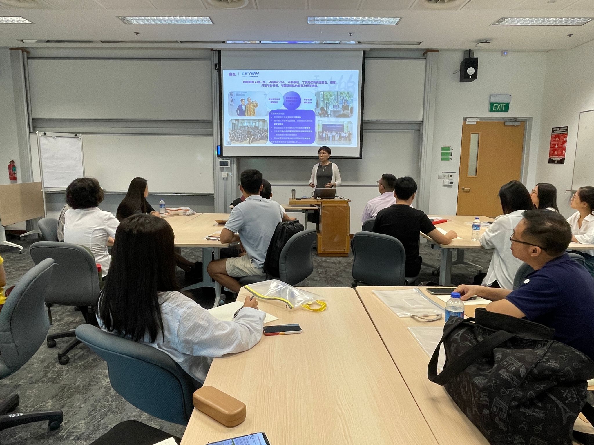 在南洋理工大学(NTU),代表团受到了专长于教育社会学、英国牛津大学教育学博士、南洋理工大学的杨沛东教授的热烈欢迎。杨教授作为南洋理工大学国立教育学院的博士生导师,向老师们介绍了南洋理工大学的本科及研究生培养体制,并分享了自己在国际教育和跨国教育流动领域的研究成果,深度解读了博士、硕士研究生、访问学者等资质的申请途径,为教师专业提升开拓了新视野。通过交流研讨,老师们对新加坡的教育体系有了更深入的了解。会后,由杨沛东教授指导的学生黄博士带领我们参观了南洋理工大学校园,代表团实地考察了南洋理工大学教师发展中心、学生创新创业长廊以及华裔馆,从而更为直观地了解了南洋理工大学的办学理念和发展历程。