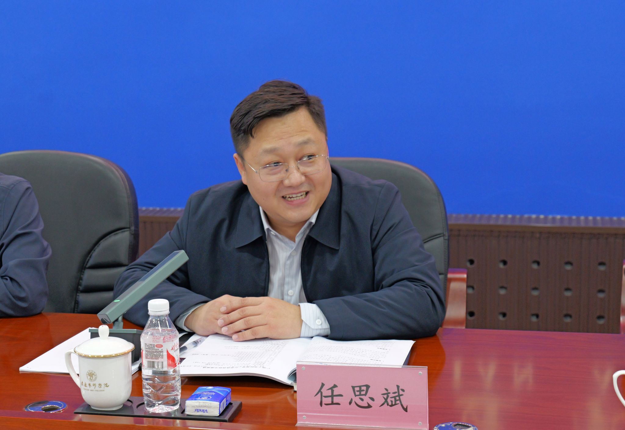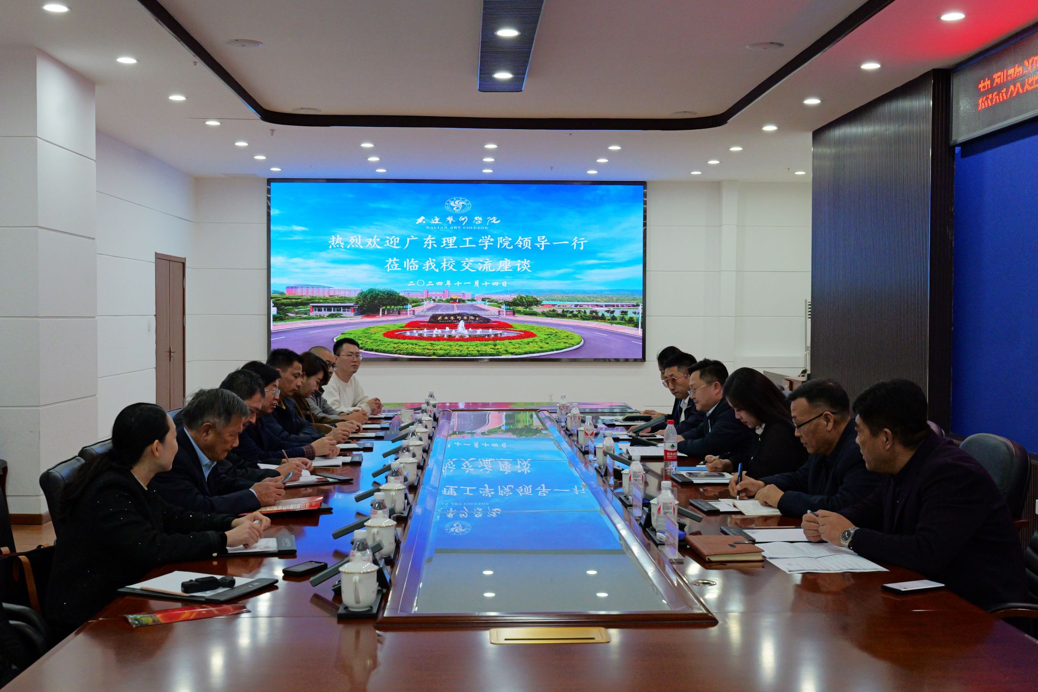 大连艺术学院党委副书记任思斌、纪委书记田苗苗及党委宣传部网络中心、党校办公室、党政办公室、学生处等有关部门负责人热情接待并与beat365调研组一行进行了深入座谈。