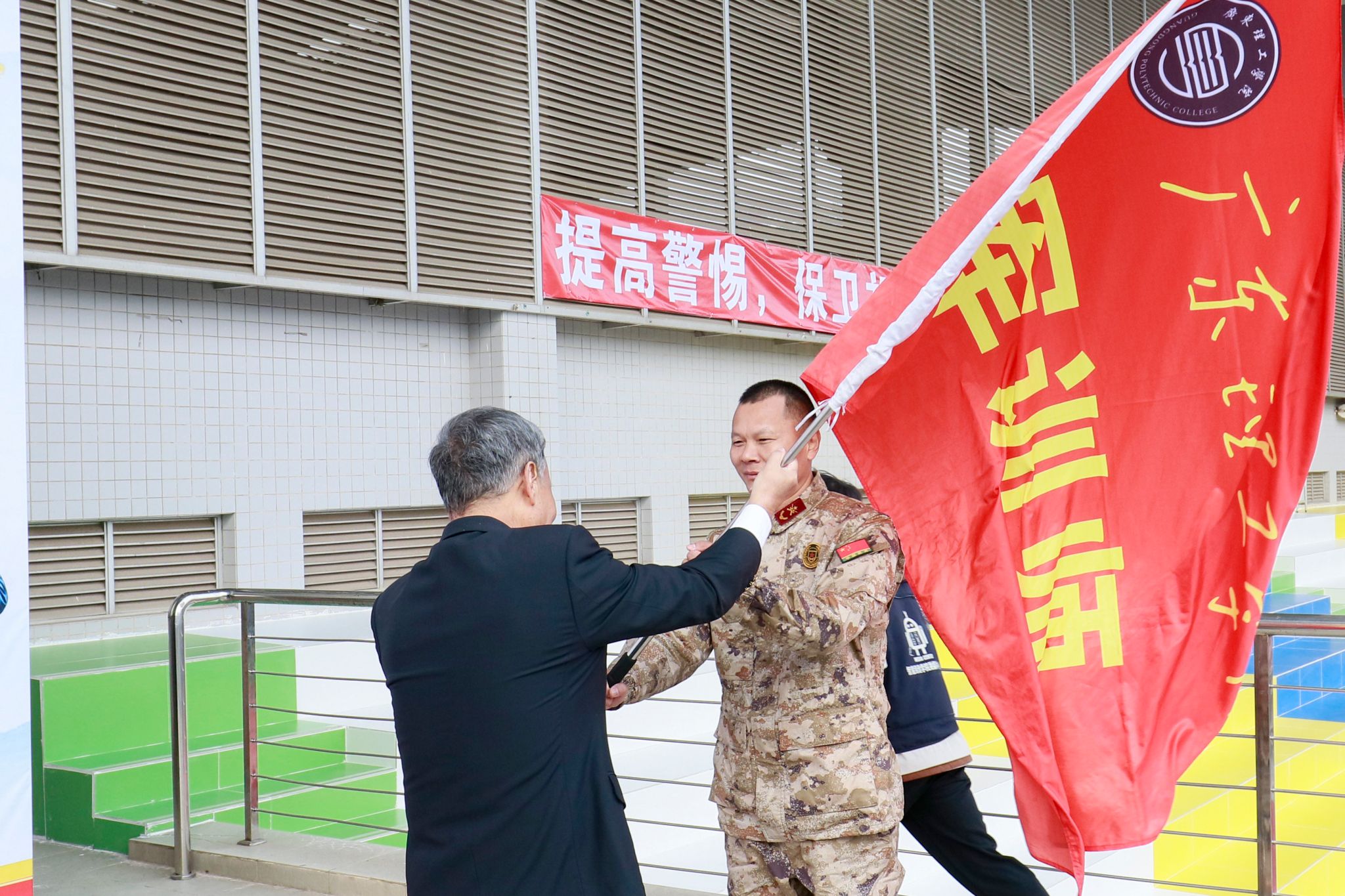柴维斯、刘香萍在会上代表学校向承担本次军训任务的全体教官表示衷心感谢和崇高敬意。他们对2024级新生作出三点要求:一是端正态度,积极参训,把军训当作一次提升自我,锻炼自我的宝贵机会;二是服从命令,尊重教官,学习优秀的军人品质和精神风貌;三是全力投入,顽强拼搏,用辛勤汗水奏响大学生活的乐章。同时希望同学们在军训中学有所成,圆满完成军训任务,将自己的青春梦想融入“中国梦”,为实现中华民族伟大复兴的中国梦添砖加瓦。