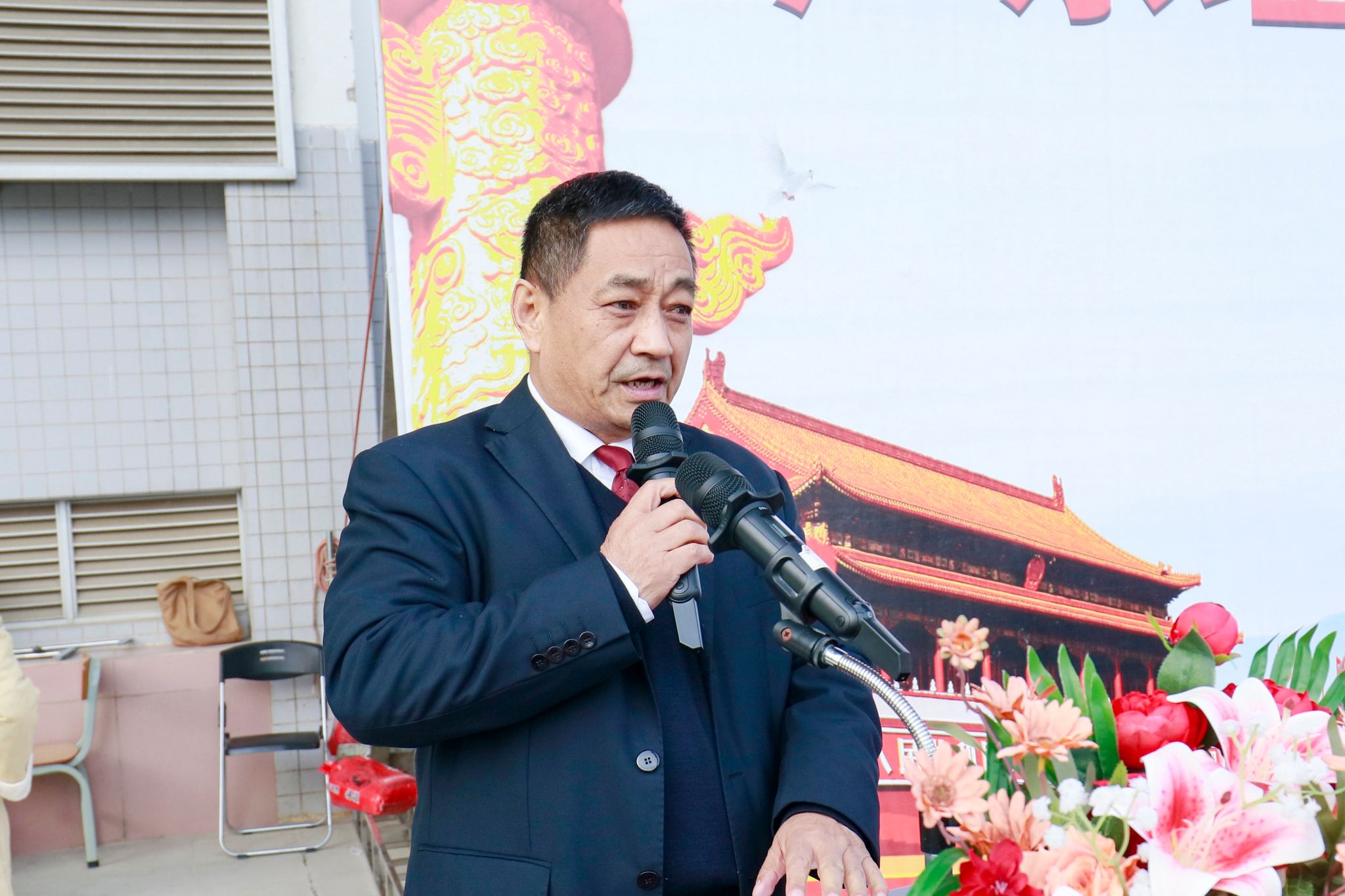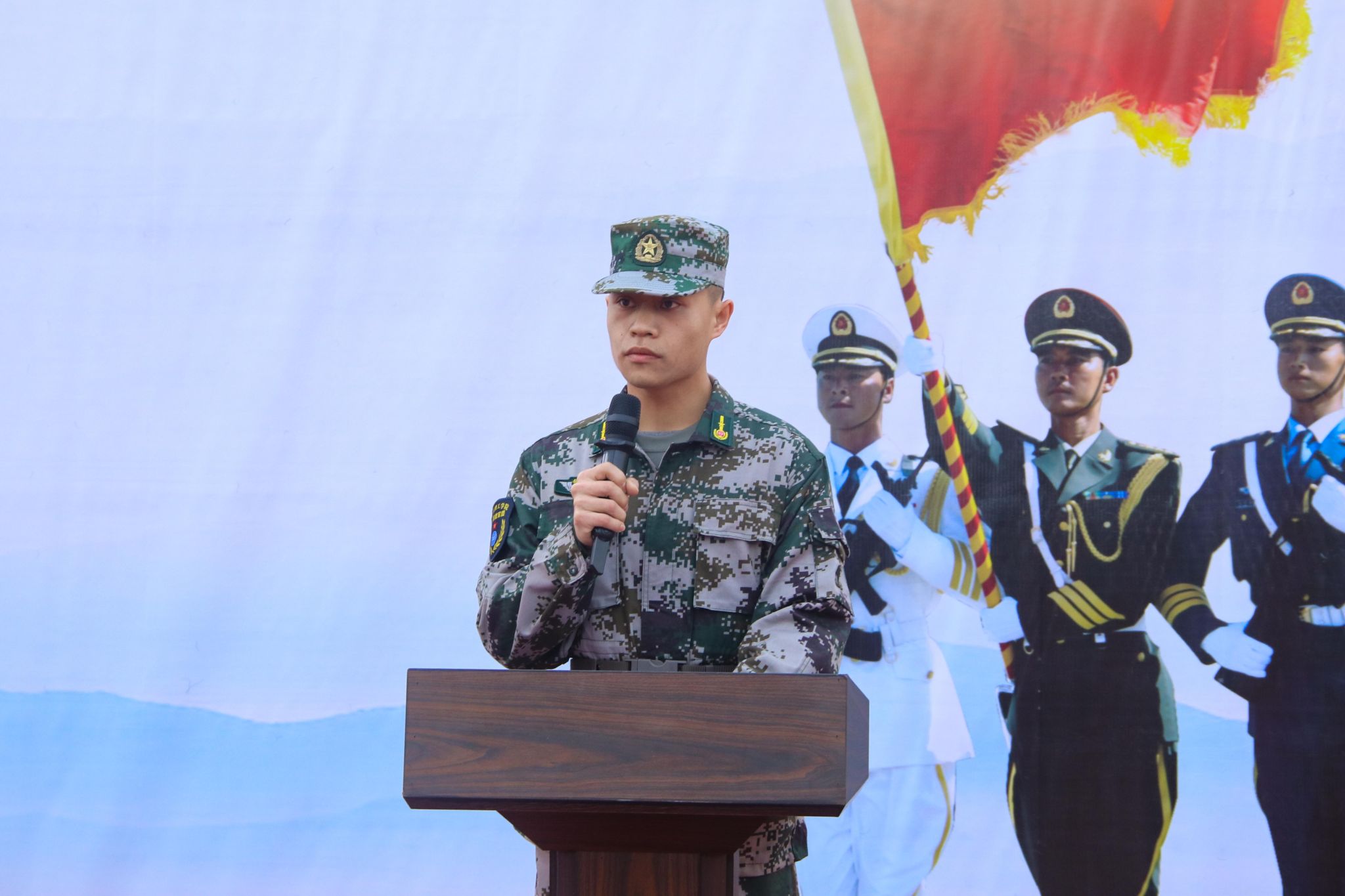 新生军训教官代表杨嘉爵、魏文峰同志发言。他们谈到军训是每一位青年学子成长道路上不可或缺的一步。它不仅能够增强学生的体质,磨学生的意志,更能培养团队精神和爱国精神。他们将通过科学的训练计划和工作过程中训练内容,帮助同学们掌握基本的军事技能,培养自律意识和坚韧毅力,也希望同学们能够认真刻苦训练。训练中的每一次坚持和努力,都将化作成长道路上的宝贵财富。