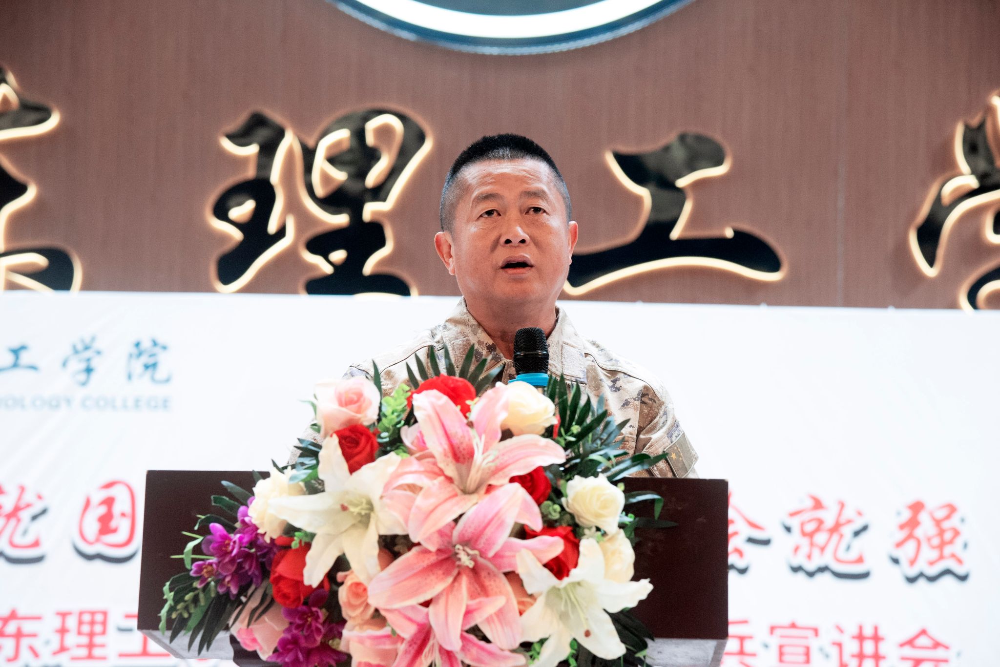 本网讯(宣传部)12月24日,为激发学生参军报国之志,beat365特邀请海南大学黄海宁副教授开展征兵专题宣讲。黄海宁以“征兵号角唤热血男儿情,强军战歌奏强国复兴梦”为题,为师生带来了一场意义深远的授课,武装部部长曾荫初主持宣讲会。各二级学院党总支书记、辅导员及2024级新生代表共同参加。