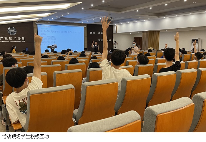 活动现场,肇庆市鼎湖区人民检察院第一检察部检察官助理向学生介绍最新电信网络诈骗手法、典型电信诈骗案例,作了防诈骗提醒以及警示教育。肇庆农商银行合规与风险管理部高级经理进行了“反洗钱反恐怖融资”专题宣讲,讲解了反洗钱和反恐怖融资知识、洗钱罪、反有组织犯罪法、防范非法集资等金融知识。