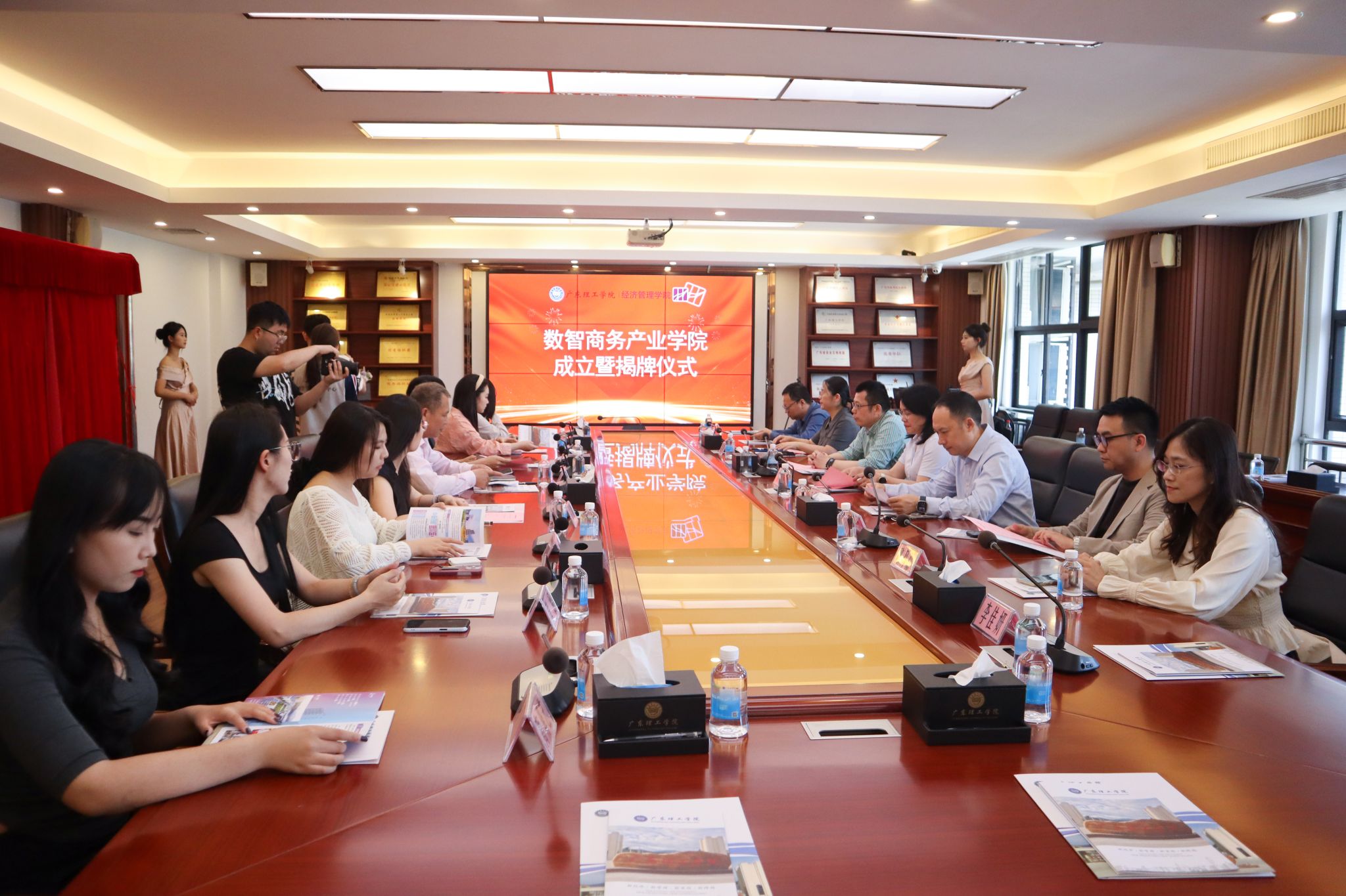 本网讯(经济管理学院)4月15日下午,beat365在线唯一官网数智商务产业学院揭牌仪式在beat365鼎湖校区行政楼三楼会议室举行。