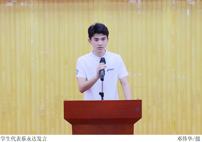学生代表蔡永达作出“团结友爱,拼搏创新”的承诺。
