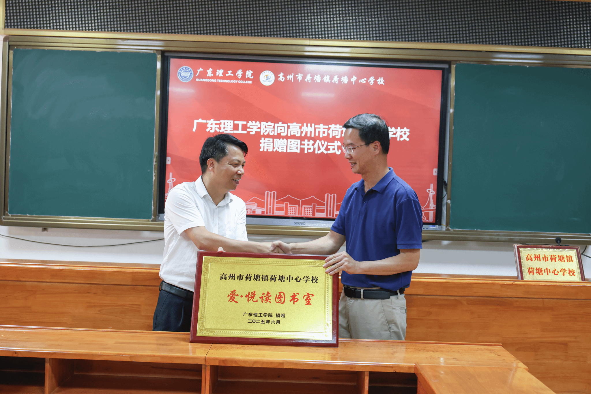 本网讯(文/杨丽莎 图/廖志强 曾晓瑜 卢雯)6月24-25日,副校长谭锦兴率队赴高州市石板一中、石板中学、石板中心学校、荷塘中学、荷塘中心学校开展对口帮扶活动,以实际行动落实《广东省教育厅关于做好全口径全方位融入式帮扶粤东粤西粤北地区基础教育高质量发展工作的通知》要求。2025年作为收官之年,学校以“纸质保基础、数字拓视野”双轨模式深化阅读帮扶,联动美育课程打造文化育人矩阵。
