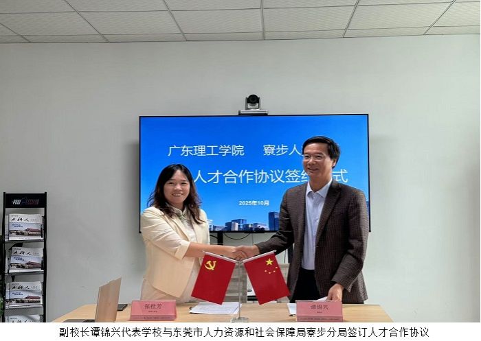 座谈会上,东莞市人力资源和社会保障局寮步分局副局长张桂芳介绍当地产业布局与人才扶持政策,谭锦兴副校长指出学校人才培养定位及专项行动目标,双方围绕“人才供需精准匹配、就业服务保障优化”深入交流,达成广泛共识并正式签订合作协议,为校地联动解决毕业生就业问题搭建稳定平台。