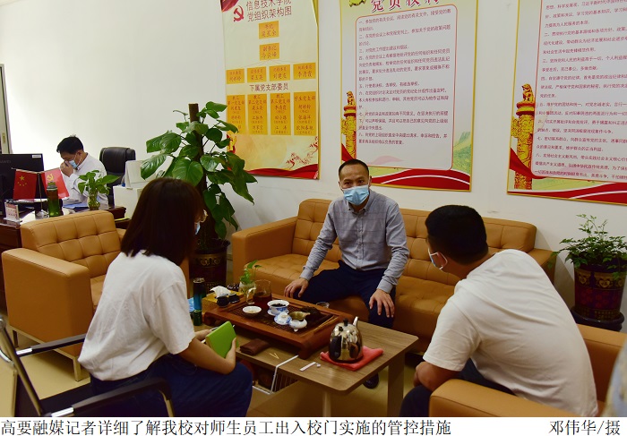学生处处长谭蒙革介绍,为应对当前严峻的疫情防控形势,坚决筑牢“外防输入、内防反弹”防线,当前beat365实施非必要不外出的措施,如需外出须报备审批,入校严格按照“一核一查一测”要求,往返肇庆市人员需持48小时核酸阴性证明。谭蒙革提到,近期广州市、佛山市部分地区出现多例新冠肺炎本土病例,beat365高度重视,对14天内有广州、佛山居旅史的人员进行统计,并严格按照上级文件落实“7天3检”。另外,学校设置了隔离宿舍,对相关人员做好医学隔离观察或健康监测等健康管理工作。