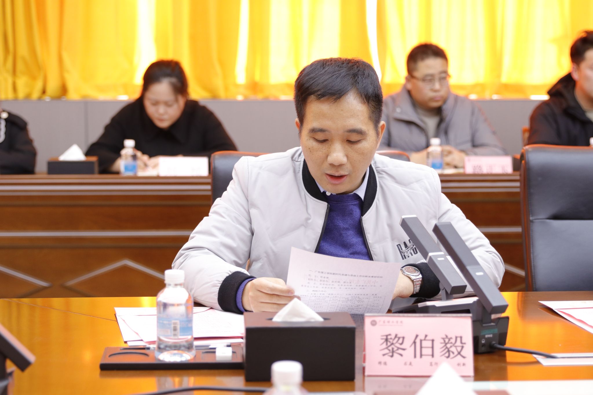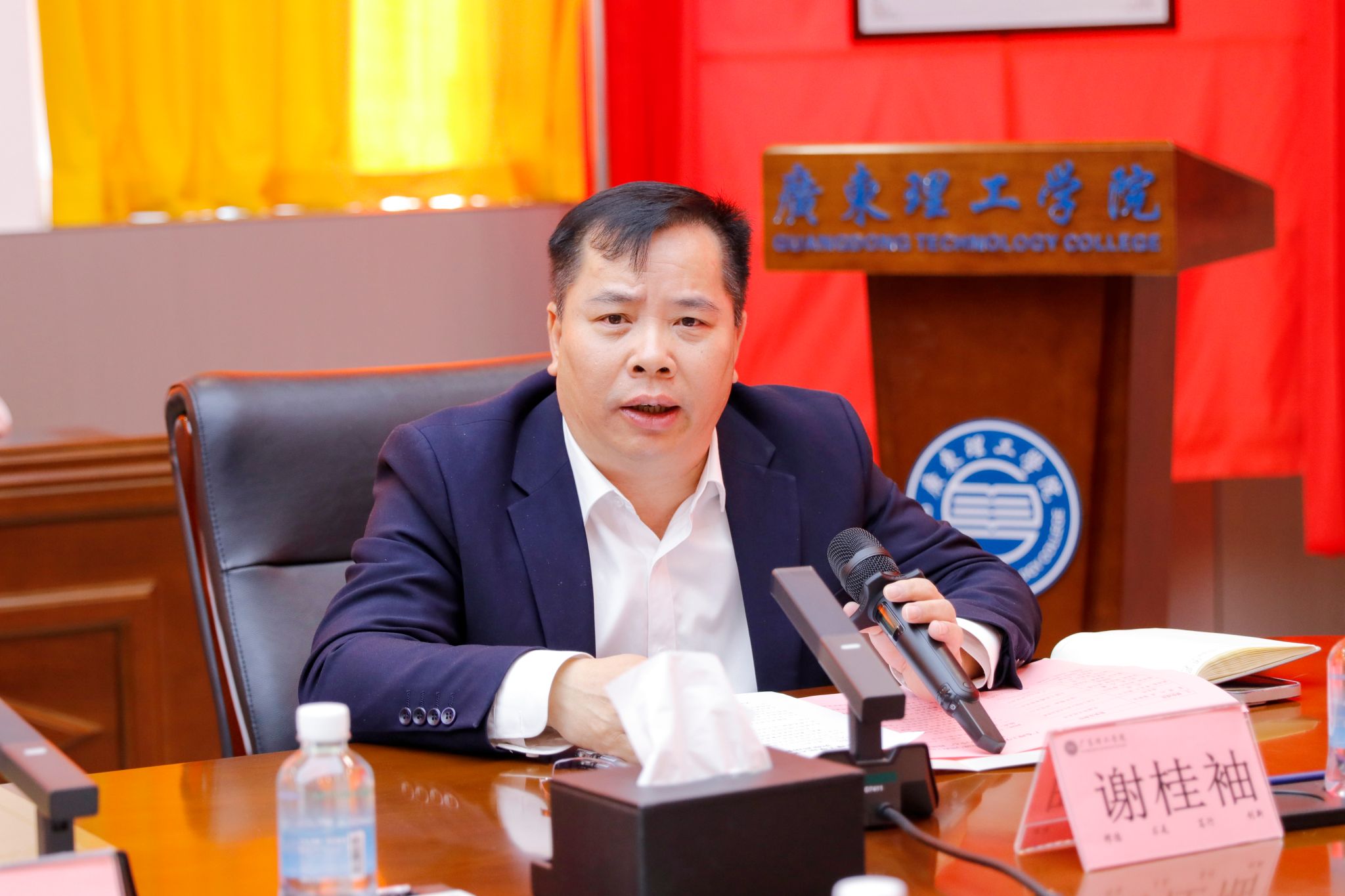 党委学生工作部部长、大湾区思想品德教育研究院主持人谢桂袖代表发言。他结合大湾区发展需求,提出将聚焦湾区青年思想品德建设,整合地域红色文化与广府文化传承,推动思政教育与区域发展同频共振,“以‘润物细无声’的浸润式教育,培养堪当民族复兴大任的时代新人”。