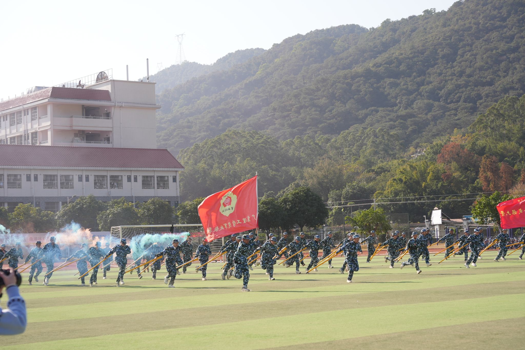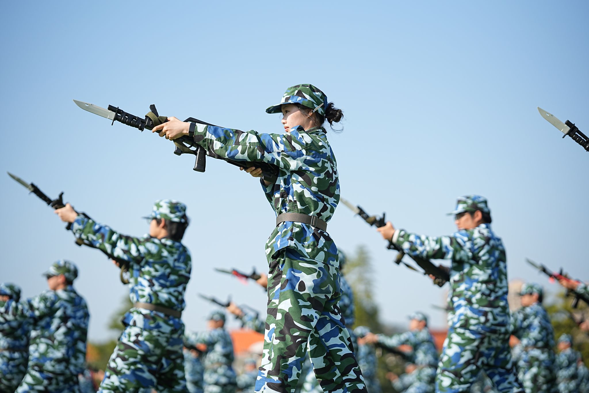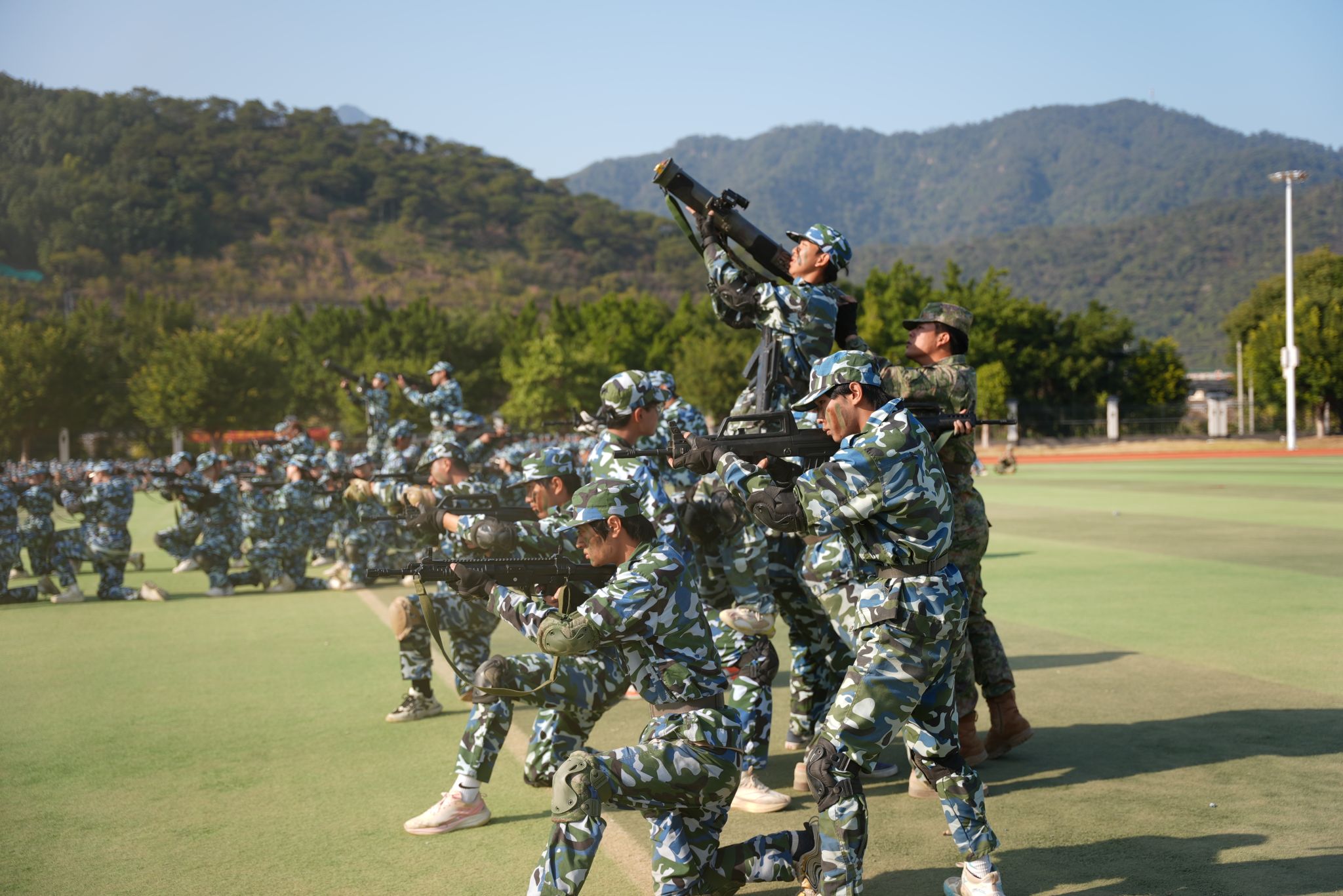 大会在庄严的升旗仪式中拉开帷幕。军事训练汇操环节,汇操表演环节,各参训方阵步伐铿锵、口号嘹亮,依次展示队列、战术等训练成果,充分展现军训淬炼后的昂扬风貌。