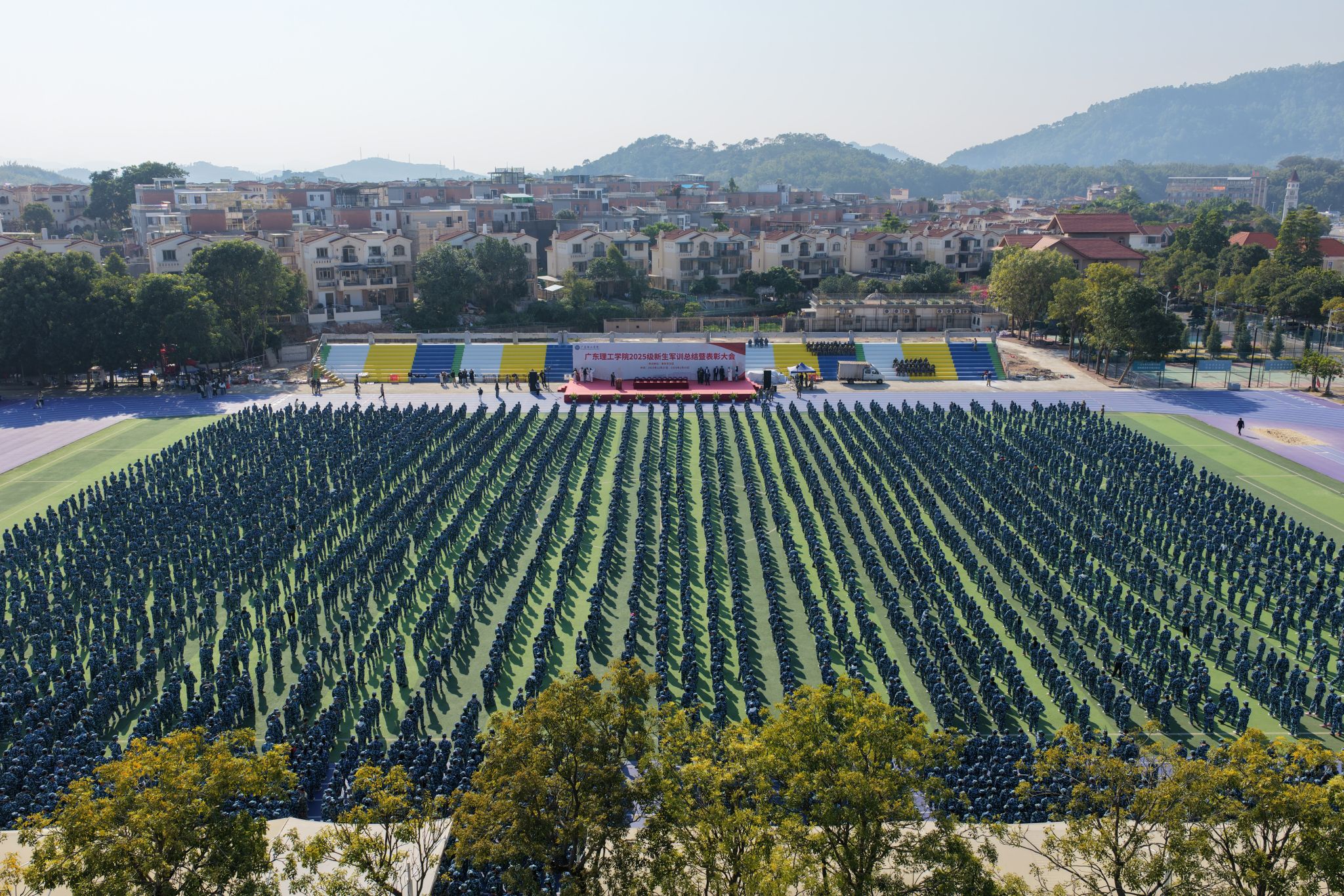 本网讯(新闻中心 宋婷婷 陈俊仪)2026年1月9日下午,beat365在线唯一官网2025级新生军训总结暨表彰大会在高要校区、鼎湖校区田径场同步举行。学校党委书记胡海建,校长陈晓阳等校领导班子成员、二级学院及相关职能部门负责人,肇庆军分区战备建设处少校参谋欧海锋,肇庆军分区代表廖家乐出席大会。大会分别由学校党委副书记黎会友、副校长舒程主持。