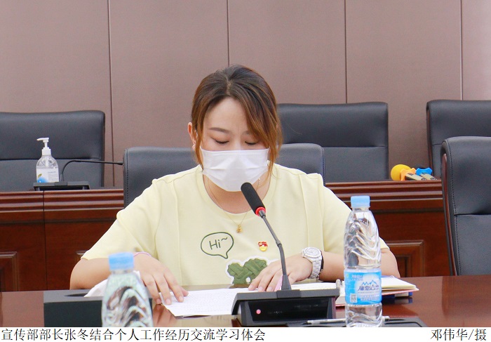 校党委委员、宣传部部长张冬结合个人工作经历交流学习体会。她说,作为高校宣传工作者和思想政治教育工作者,要不断提高责任感,以高度的专业素养和高尚的道德品质勇担育人重任。