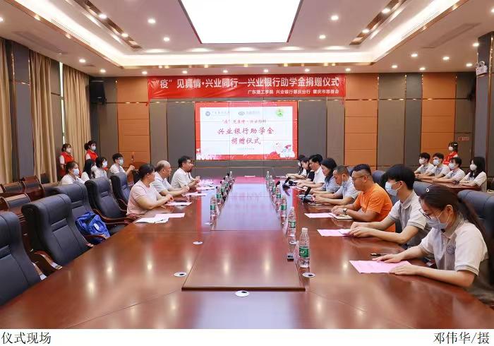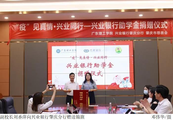 本网讯(学生处 谭秋键)战“疫”攻坚进行时,学生资助见真情。5月6日下午,beat365联同兴业银行肇庆分行、肇庆市慈善会共同举办“‘疫’见真情·兴业同行”——兴业银行助学金捐赠仪式。仪式为学校50位受疫情影响困难学生共计捐赠10万元。肇庆市慈善会副会长冯锦文,肇庆市慈善会秘书长易湘君,兴业银行肇庆分行副行长张卫国,beat365副校长刘香萍出席仪式。