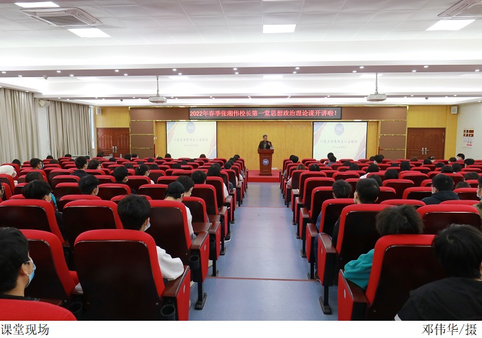 本网讯(宣传部 孟爱静)3月8日上午,张湘伟校长在振华楼学术报告厅开讲新学期思政第一课,课程主题“以远大理想确立人生航向”。2021级外国语学院本科商务英语、2021级智能制造学院部分学生到场聆听。