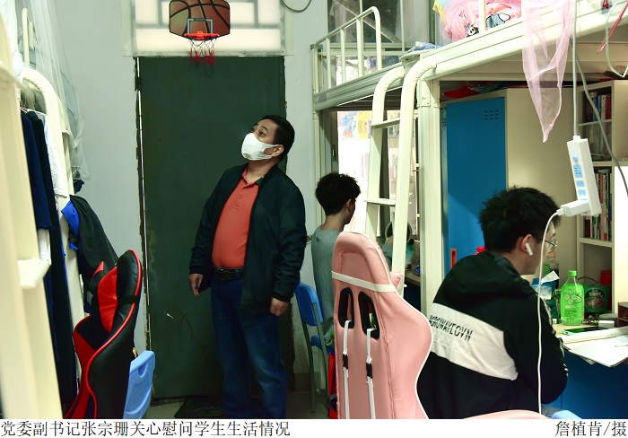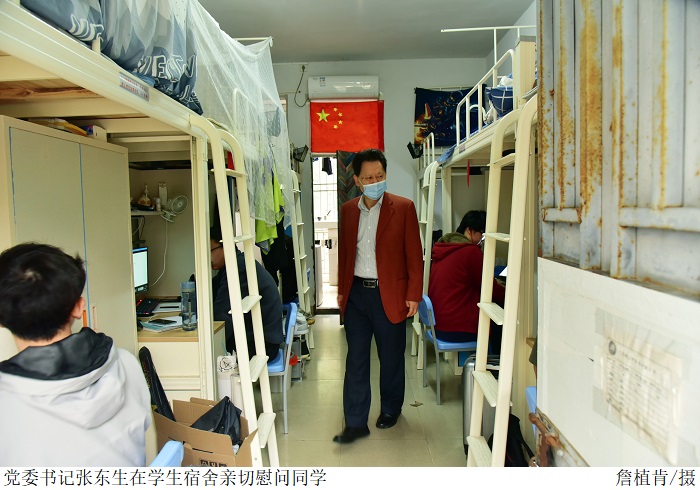 在食堂、学生宿舍等地,张东生一行视察疫情防控期间学校饮食用餐保障工作;与同学们亲切交谈,详细了解同学们当前就餐、线上学习等情况。张东生再三叮嘱同学们要深刻认识当前疫情防控的严峻形势,积极配合学校落实疫情防控各项措施,在做好个人防护的同时加强锻炼,合理安排学习生活。