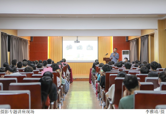 本网讯(宣传部 孟爱静)11月3日晚,由党委宣传部举办的“发现新闻摄影的美”主题讲座在翔中堂三楼团学报告厅举行。本次讲座邀请专业摄影师康庆新老师到校为各院系及行政部门从事新闻宣传工作的师生进行摄影知识培训。讲座吸引了校内众多摄影爱好者到场聆听。