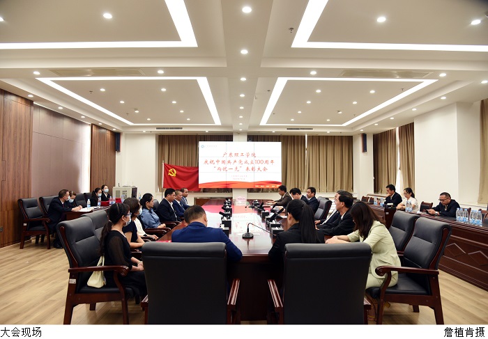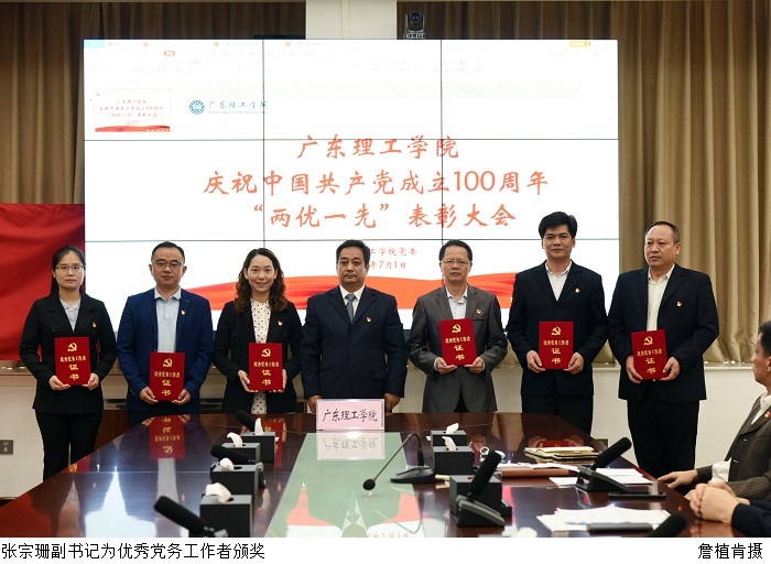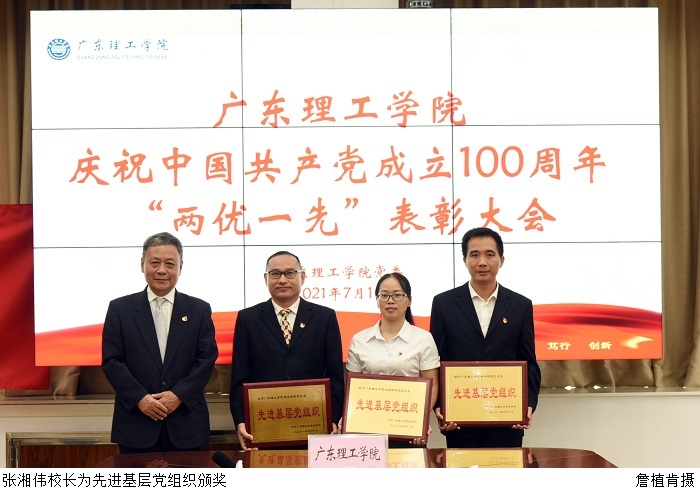 张湘伟校长宣读党委《关于庆祝建党100周年表彰先进基层党组织、优秀共产党员和优秀党务工作者的决定》。本次表彰中,对评选出的4个党总支、7个党支部、14名党务工作者和178名党员,分别授予“先进党总支”、“先进党支部”、“优秀党务工作者”和 “优秀共产党员”的荣誉称号。