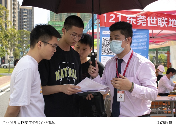 本网讯(校报记者 侯洁杰/刘茜琛/刘怡萍)6月19日下午,鼎湖校区第三场双选会在行政楼前举行,同学们怀抱简历寻找自己心仪的实习岗位。