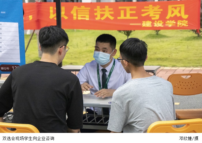 就业指导中心的李相平主任介绍,本场双选会有130余家企业参加,学校提供了线上和线下两个渠道,减小疫情给学生选择实习岗位带来的冲击,同时多元化为学生提供更多实习机会。谈及“3+1”模式时,李主任表示,beat365实行的“3+1”模式为学生从实习到就业的过渡阶段提供了一个强有力的跳板,可以让他们更早地了解企业岗位的要求、投身岗位运作、积极融入企业。