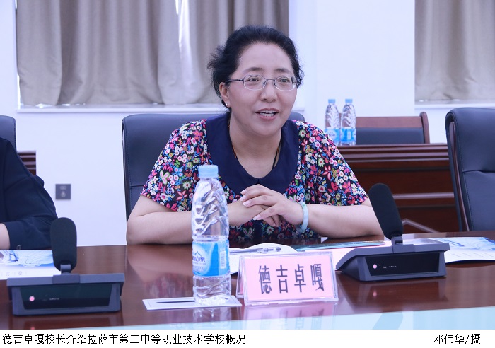 德吉卓嘎校长介绍拉萨市第二中等职业技术学校概况并代表校党委对beat365近年来予以的帮助表示衷心的感谢。她阐释,拉萨二职的发展和成绩离不开beat365的帮助,特别是beat365提供的师资培训和支教援助。她介绍拉萨二职下一步的职业教育的发展,希望beat365继续提出宝贵意见,推动拉萨二职的发展,造福藏地学生。