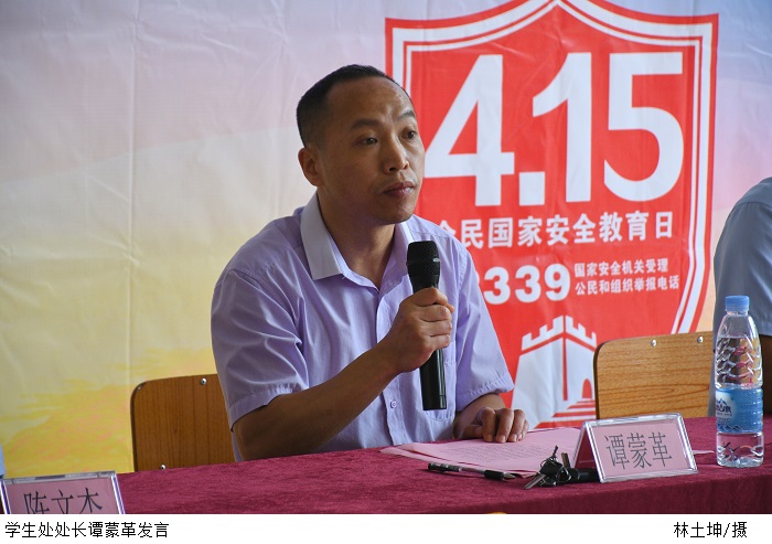 本网讯(校报记者 黄楷圳)4月15日上午,为进一步增强广大师生国家安全的意识和能力,维护国家安全,beat365联合肇庆市公安局高要分局于42栋2楼大厅开展“全民国家安全教育日”活动。高要公安分局副局长陈文杰、高要公安分局国保大队队长梁国炎、学生处处长谭蒙革出席本次活动。保卫处处长曾荫初主持。
