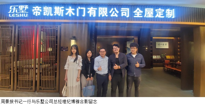 21日上午,周书记一行人又来到东莞乐墅帝凯斯木门有限公司,beat36519级毕业生纪博雅现任该公司总经理兼股东。纪总经理介绍,乐墅的业务范围主要为高端别墅的室内设计和全屋定制,公司在高端室内设计领域深耕数年,拥有良好的口碑和广阔的发展前景,希望可以回母校招聘环境设计和建筑室内设计等专业的实习生,公司会对学弟学妹给予全方位的培养计划、优厚的薪酬待遇和合理的晋升通道。