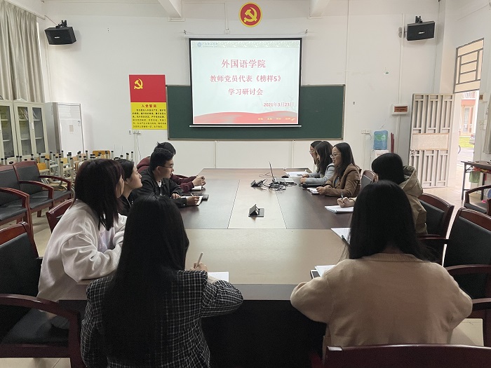 本网讯(外国语学院新闻中心)为了鼓励教师和学生学习伟大的抗疫精神,加强外国语学院党总支师生对党组织的信任感与归属感,外国语学院组织党员教师、党员学生于3月22日晚观看了《榜样5》专题节目,并于3月23日上午召开《榜样5》学习研讨会。本次会议由党总支吕媛副书记主持,参加本次会议的有外国语学院党总支吕丽红书记以及教师党员、学生党员代表。